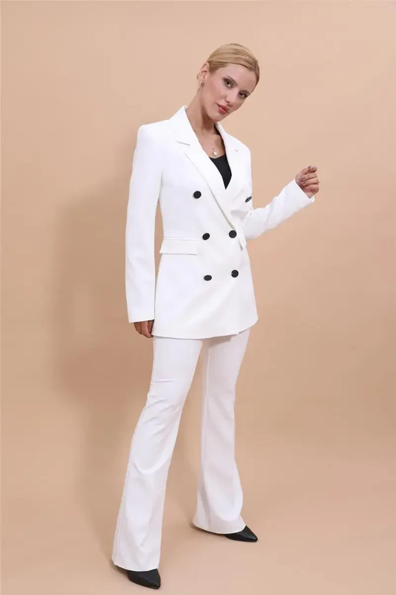 Blazer Ceket & İspanyol Paça Takım | Şık Ekru Tasarım