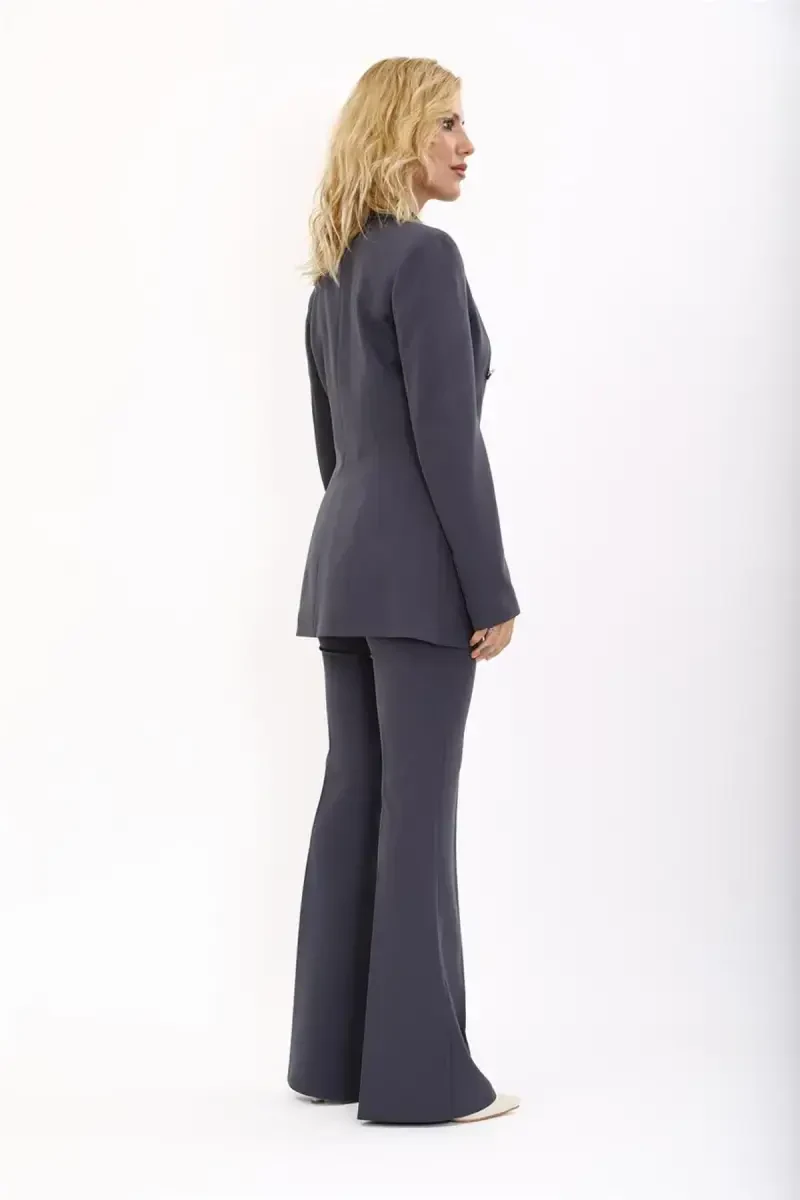 Blazer Ko'ylagi & Keng Oyoqli Shimlar To'plami - Tutun