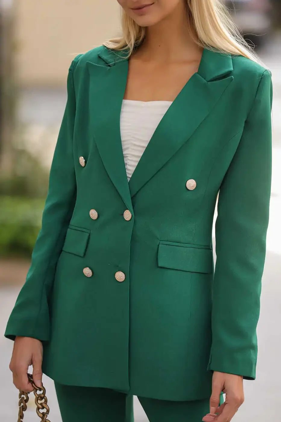 Our elegant cut blazer jacket offers a modern and sophisticated look. Made from high-quality fabric, the jacket provides a perfect fit for both business and everyday life. Its cut that accentuates the shoulders and its elegant buttons add confidence and style to you.