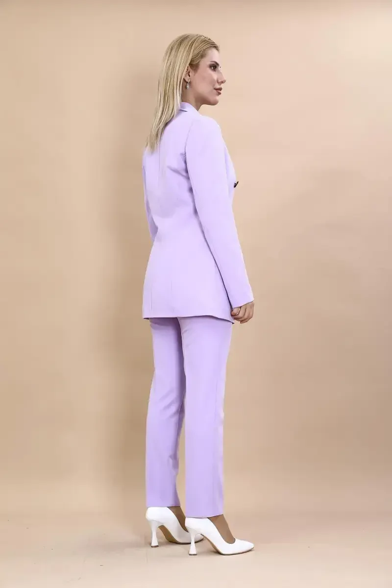 Bring a new breath to your style with our Blazer Jacket & Straight Leg Trousers Set, which combines elegance and comfort. You will attract attention in any environment with the refreshing effect of the Light Lilac color. This special design suit is offered to you with the assurance of ÖNDER ÖZSOY. This suit, which is our own production, is produced with high quality materials and careful workmanship. The perfect harmony of the blazer jacket and straight leg trousers is an ideal option for both daily use and special occasions. This product is available in limited quantities at a campaign price, don't miss this opportunity! On our platform where there are multiple sellers, you can also purchase this product from different sellers. You can determine the most suitable option for you by comparing the sellers' prices, scores, delivery conditions and other advantages. However, please note that you can order a maximum of 10 units for this product. If you want to order more, Trendyol reserves the right to cancel your order. Different limits apply for your corporate orders. If you are not satisfied with the product, you can take advantage of the free return option within 15 days. You can review our return conditions for detailed information. Our blazer jacket offers a stylish look with its 75 cm length, decorative pocket with flap on the front and 6 buttons. Our trousers are 95 cm long, have an elasticated waist and a side zipper. These features provide both comfortable use and a stylish stance. Colors may vary due to light differences in studio shots, please take this into consideration. This suit, which will be an indispensable part of your wardrobe, is a perfect choice for women who are looking for elegance and comfort together. You can easily use this suit both in the office and at special events, and it will take your style to the next level. You will always look stylish and well-groomed with the elegance of the Light Lilac color and the modern cut of the suit.