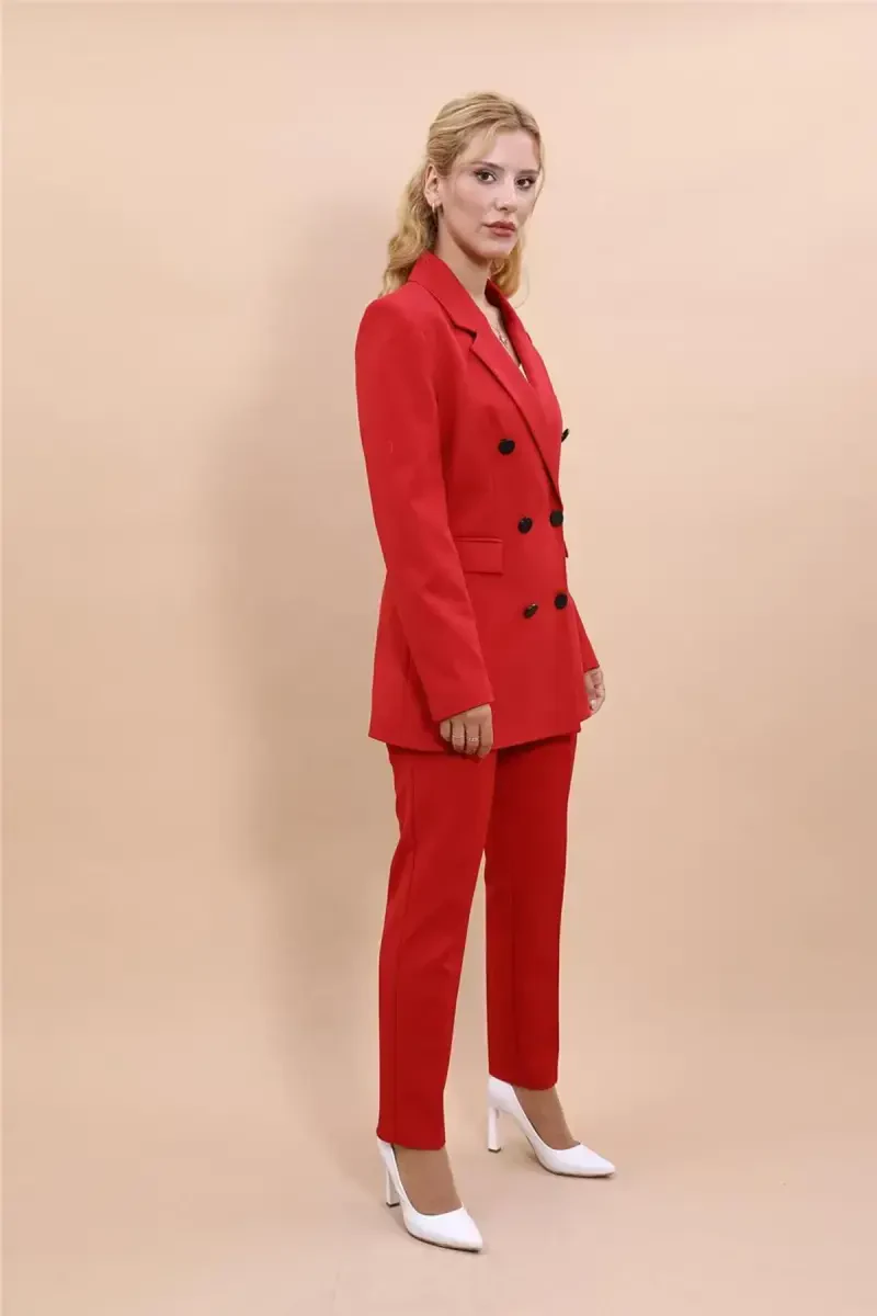 Blazer Ko'ylagi & Truba Oyoq Shimlar To'plami - Qizil