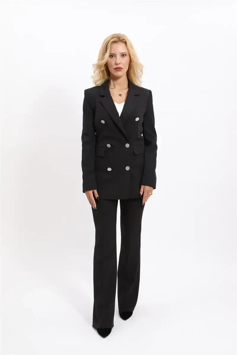 O'zingizga nafislik bag'ishlash uchun mo'ljallangan Blazer Ko'ylagi va Keng Oyoqli Shim Taklimi kundalik hayotingizda ham, maxsus kunlarda ham mukammal tanlovdir. Sifatli matodan tayyorlangan bu taklim qulaylik va nafislikni birlashtiradi. Blazer ko'ylagimiz nafis kesimi bilan tanangizni mukammal ravishda qamrab oladi va uslubingizni ta'kidlaydi. Keng oyoqli shimimsiz esa oyoqlaringizni uzunroq va ingichka qilib ko'rsatadi, bu esa sizga o'ziga ishongan holda turishga imkon beradi. Taklimimizning qora rangi har qanday kombinatsiyaga mos keladi, bu esa uslubingizga nafislik qo'shish imkonini beradi.