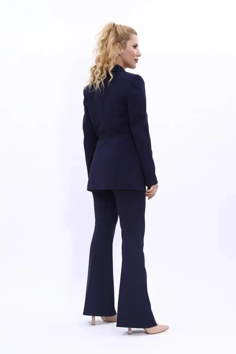 Блейзер и брюки клеш — это особый дизайн, отражающий стильную и уверенную в себе позицию современной женщины. Этот костюм, сочетающий в себе благородство и универсальность темно-синего цвета, обеспечивает безупречный внешний вид как в деловой жизни, так и на светских мероприятиях. Высококачественная ткань обеспечивает комфорт в течение всего дня, а элегантный крой наилучшим образом подчеркивает достоинства вашей фигуры. Блейзер отличается классическим воротником и изящными деталями на пуговицах, а брюки клеш создают современный силуэт, не ограничивая свободу движений. Этот костюм легко сочетается с различными аксессуарами и обувью, что позволяет создавать разнообразные стили, подходящие для любой обстановки. Независимо от того, выберете ли вы элегантный образ с туфлями на каблуках или более непринужденный и повседневный стиль со спортивной обувью, блейзер и брюки клеш всегда дополнят ваш стиль. Благодаря дышащей ткани его можно комфортно носить в любое время года. Он создает профессиональный образ в офисной обстановке и позволяет вам быть элегантной и эффектной на ужине или особом мероприятии. Этот костюм станет одним из основных элементов вашего гардероба и долгосрочной инвестицией, которая никогда не выйдет из моды. Выберите наш блейзер и брюки клеш, чтобы почувствовать себя особенной и наилучшим образом отразить свой стиль. Этот костюм, сочетающий в себе элегантность, комфорт и качество, является незаменимой вещью в гардеробе каждой женщины. Благодаря вневременному очарованию темно-синего цвета вы всегда будете выглядеть привлекательно и стильно.