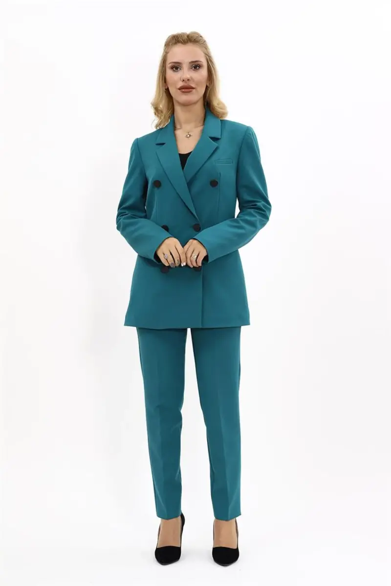 Блейзер, брюки-дудочки, костюм, нефтяной цвет, женская одежда, офисная одежда, особый случай, элегантный костюм, удобный костюм, современный дизайн.