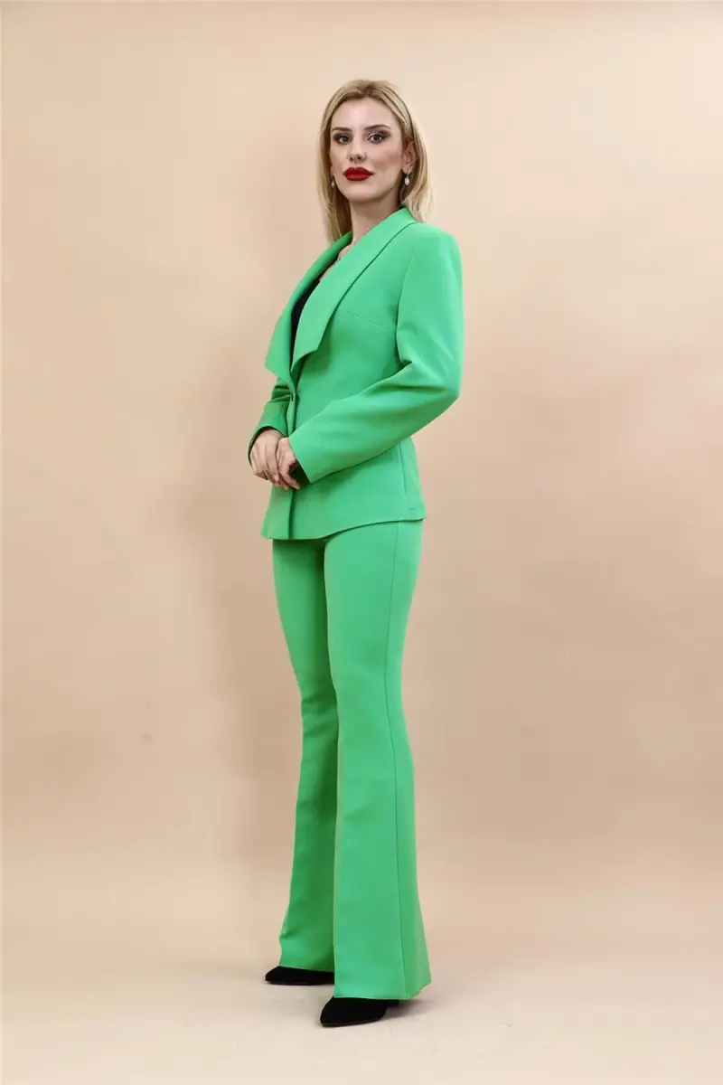 миди-пиджак, брюки с испанской посадкой, костюм, a.зеленый, стильный, модный, женская одежда, повседневная одежда, удобный