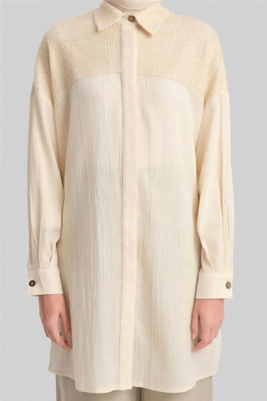Туника с сетчатой отделкой, туника с льняным видом, летняя туника, стильная туника, удобная туника