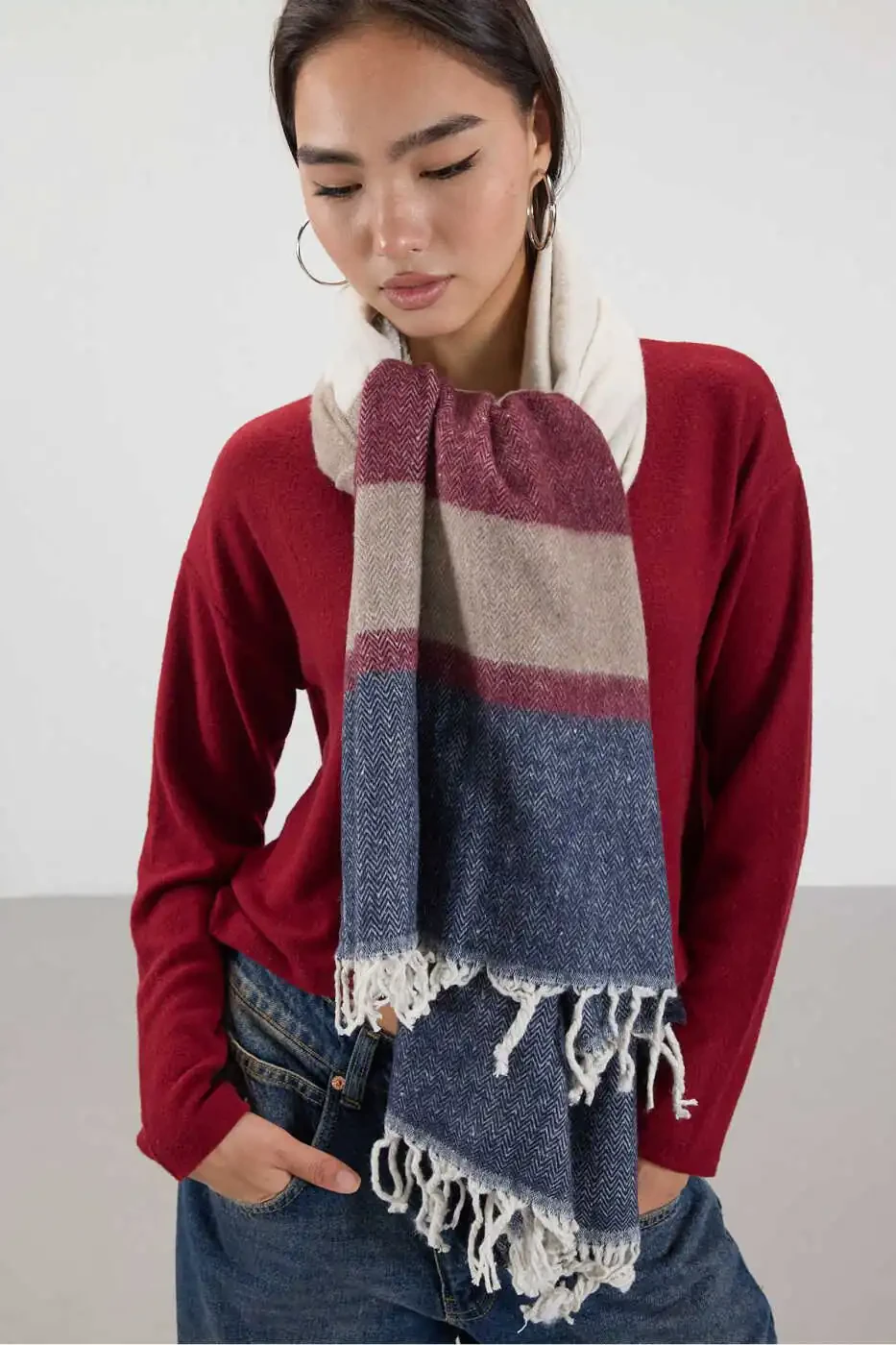 Шаль в стиле колор-блок Шаль2039-d2, разработанная для тех, кто ищет сочетание тепла и элегантности, станет незаменимым предметом вашего гардероба. Благодаря яркому и эффектному дизайну в стиле колор-блок, эта шаль идеально подойдет к любому вашему наряду, а ее мягкая текстура окутает вас теплом и комфортом. Изготовленная из смеси 85% акрила и 15% нейлона, эта шаль одновременно прочная и удобная. Длина 200 см и ширина 65 см обеспечивают широкие возможности использования. Накиньте ее на плечи или обвяжите вокруг шеи, создавая различные стили - шаль в стиле колор-блок Шаль2039-d2 всегда дополнит ваш элегантный образ. Кисточки на концах придают шали динамичность и изящество, добавляя вашему образу приятную деталь. Эту шаль можно с комфортом носить как в повседневной жизни, так и на особых мероприятиях или прохладных вечерних ужинах, она станет самым простым способом добавить вашему стилю нотку изысканности. Не упустите этот товар, предлагаемый с гарантией Addax! Воспользуйтесь акционной ценой и закажите прямо сейчас, чтобы получить один из товаров из ограниченного запаса. Помните, что вы можете заказать не более 10 штук этого товара. Выберите шаль в стиле колор-блок Шаль2039-d2, чтобы ощутить сочетание элегантности и комфорта.