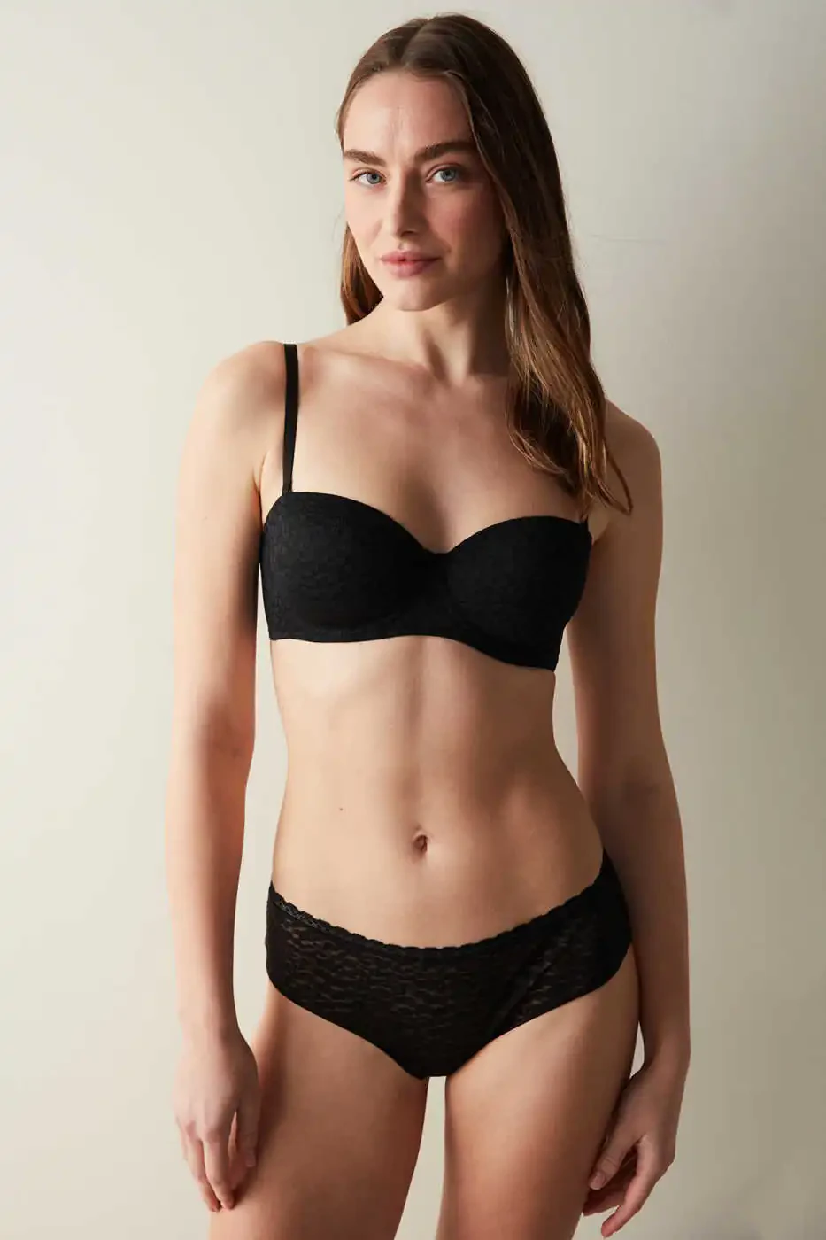 Bloom Dantel Qora Ich Kiyim, nafis dizayni va qulay joylashuvi bilan har kuni hayotingizda uslubni ushlashingizga yordam beradi. Yumshoq va nafas oladigan dantel teringizga tegib turgan har bir lahzada qulaylik baxsh etadi, nafis ko'rinishi esa kiyadigan har qanday kiyimingiz bilan uyg'unlashadi.