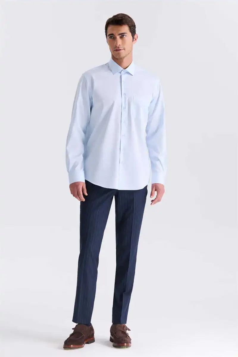 With the **Mavi Classic Fit 100% Cotton Shirt**, you'll feel stylish and comfortable. Made from 100% cotton, this shirt provides all-day comfort with its soft texture and breathability. Its classic cut flatters all body types and offers a versatile look. Our model, who is 187 cm tall, weighs 78 kg, has a 120 cm shoulder width, and a 100 cm chest circumference, is wearing a size M. This shirt is an excellent choice for business meetings, social events, and everyday use. Its eye-catching blue color pairs well with a range of bottoms, from dark denim to chinos. Crafted from 100% cotton, this shirt is easy to care for and its durable construction will help you maintain your sharp look for years to come.
