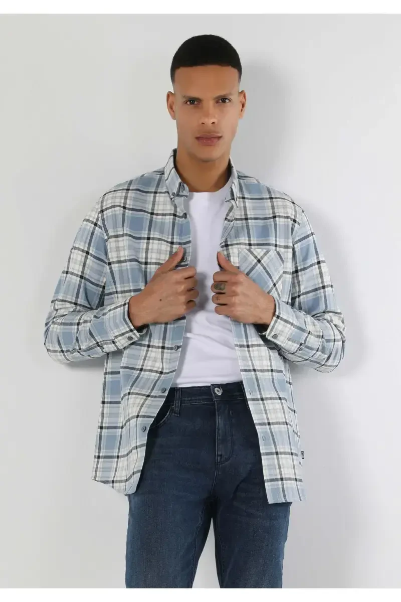 The Regular Fit Plaid Pocket Detail Blue Men's Long Sleeve Shirt Cl1061798 stands out with its high-quality fabric and impeccable tailoring. Combining comfort and style, this shirt will become an indispensable part of your wardrobe.