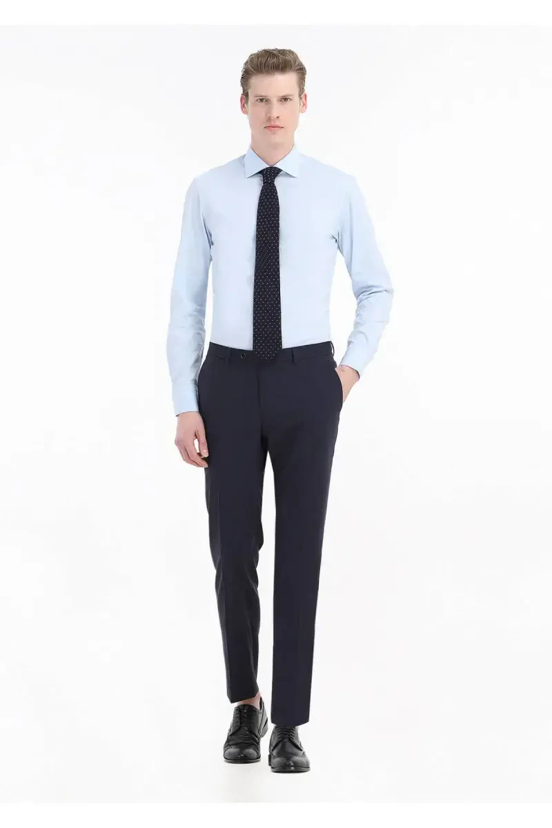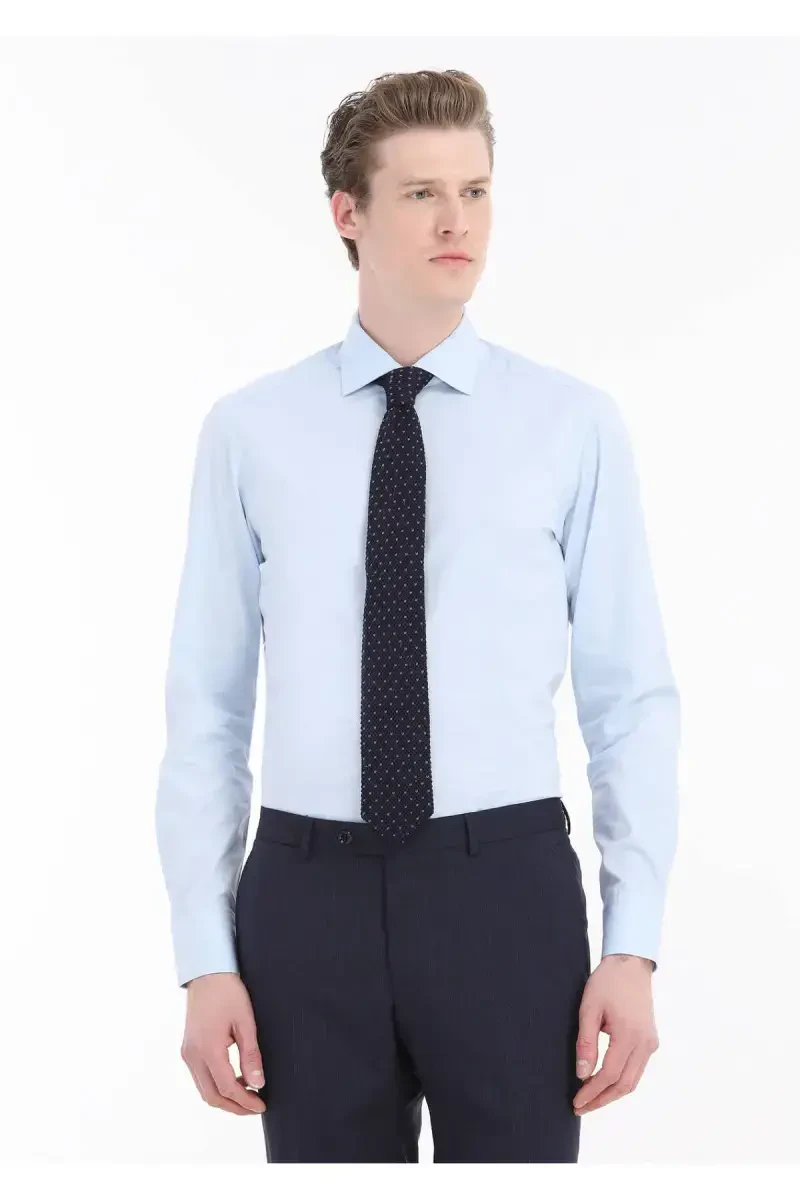 Combining the elegance of blue with the modern lines of a slim fit cut, the Blue Plain Slim Fit Woven Classic Cotton Blend Shirt is set to become one of the indispensable pieces in your wardrobe. Made from a blend of 60% cotton and 40% polyester, this shirt offers all-day comfort thanks to its breathable structure. The durability and quality of the woven fabric ensures long-lasting use. The classic collar design allows you to achieve a stylish look both at formal events and in daily life. The slim fit cut gently hugs your body lines without sacrificing your freedom of movement. Its plain blue color and simple design can be easily combined with different trousers and accessories, adapting to every style. This shirt is an ideal choice for the modern man who seeks both elegance and comfort. The product will be delivered to you with the assurance of RAMSEY. Order now to not miss this product, which is available in limited stock!