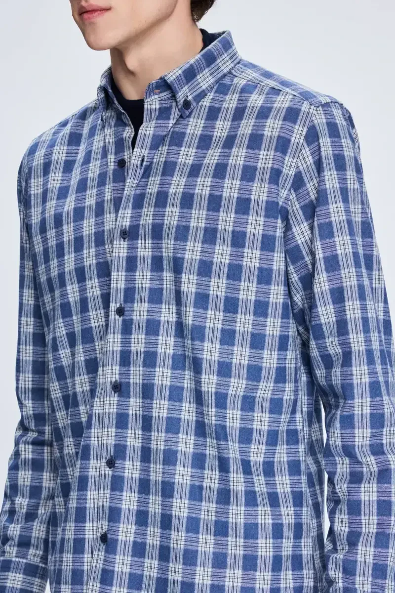 Blue Slim Fit Plaid Button-Down Collar Long Sleeve Cotton Men's Shirt has a special design that combines elegance and comfort. Its slim fit cut offers a modern, body-hugging look, while the plaid pattern adds a dynamic and stylish touch to the shirt. The button-down collar detail makes the shirt suitable for both formal and everyday use. Its long-sleeved design is an ideal option that you can prefer in cool weather or more formal environments. Thanks to its cotton fabric, it offers a comfortable wearing experience all day long. You can easily prefer this shirt whether in business life, at special invitations or in your daily activities. You can achieve a stylish look with a classic trouser and jacket combination, or you can create a more comfortable and sporty style with jeans and sneakers. You can easily change the style of the shirt with your accessory choices. For example, you can make the shirt more formal with a stylish tie or cufflinks, or you can create a more personal and original style with a colorful scarf or bracelet. This shirt is a candidate to be one of the indispensable pieces of your wardrobe. It is an ideal choice for men looking for both a stylish and comfortable option. Thanks to its quality fabric, modern design and versatile use, it is a product that you can enjoy for many years. It is a perfect gift option for yourself or your loved ones. Reflect your style with the Blue Slim Fit Plaid Button-Down Collar Long Sleeve Cotton Men's Shirt, and attract attention in any environment! The plaid pattern of the shirt is offered in different color options, so you can easily choose the one that best suits your personal taste. Each color adds a different atmosphere to the shirt and allows you to create different combinations. The buttons of the shirt are also made of high-quality material and provide long-lasting use. The durability of the buttons increases the overall quality of the shirt. Taking care of the shirt will also extend the life of the product. It is important to wash and iron the shirt according to the instructions on the label. Generally, cotton fabrics should be washed at low temperature and on a delicate program. In addition, hanging the shirt to dry instead of drying it in a dryer will prevent the fabric from wearing out. In the ironing process, it is recommended to turn the shirt inside out and iron it at low heat. In this way, the color of the shirt will not fade and the fabric will not be damaged. Blue Slim Fit Plaid Button-Down Collar Long Sleeve Cotton Men's Shirt not only offers a stylish look, but also prioritizes comfort. The fabric of the shirt allows your skin to breathe and prevents sweating. In this way, you feel fresh and comfortable all day long. The slim fit cut of the shirt does not restrict your freedom of movement and fits your body perfectly. This gives you a more confident stance. As a result, the Blue Slim Fit Plaid Button-Down Collar Long Sleeve Cotton Men's Shirt is an excellent choice for men looking for both style and comfort. With its quality fabric, modern design, versatile use and affordable price, this shirt is a candidate to be an indispensable part of your wardrobe.