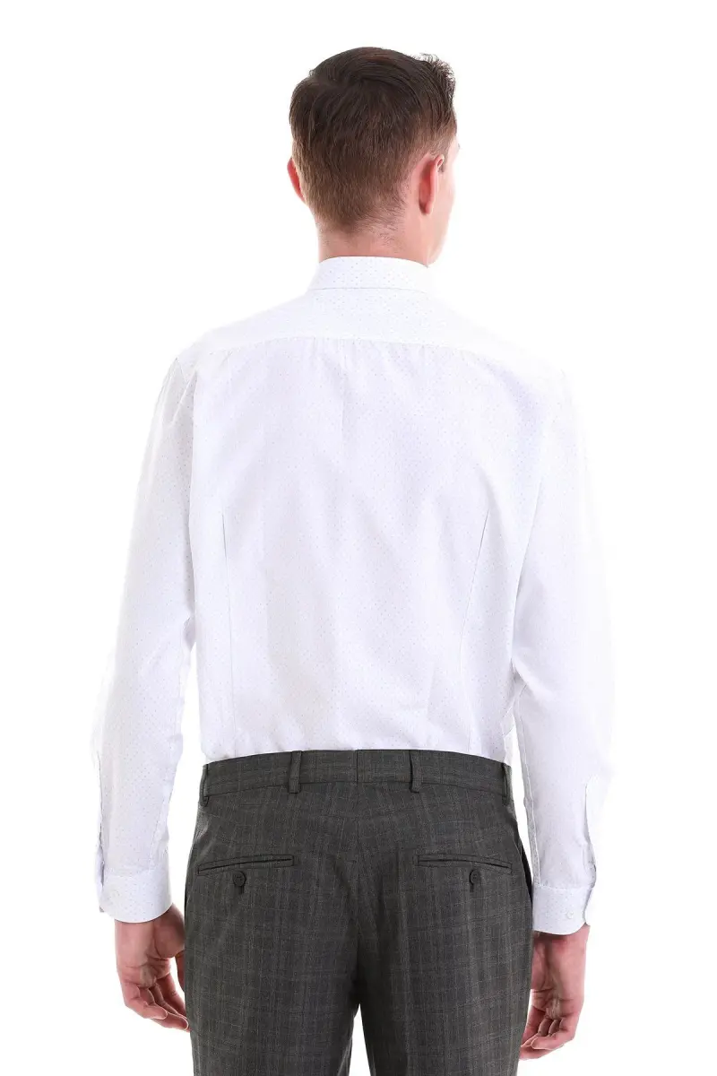 Blue Slim Fit Printed Cotton Slim Collar Long Sleeve Classic Shirt has a special design that combines modern and stylish appearance. This slim fit shirt, which fits perfectly to the body, creates a perfect silhouette on you. Cotton fabric provides breathability and comfort all day long, while the prints on it add a unique and eye-catching touch to the shirt. The slim collar design is compatible with both classic and modern styles, while the long-sleeved structure offers the possibility of use in different seasons. This shirt allows you to highlight your elegance in any environment, whether at a business meeting or a special occasion. It offers long-lasting use thanks to its quality stitching and durable material. This shirt, which will be an indispensable part of your wardrobe, is one of the most stylish ways to reflect your style. The prints on it help you express your personality and originality, while the blue color easily adapts to different combinations. The comfort and elegance of the shirt together makes you feel good all day long. This design, which brings a modern interpretation to the classic shirt concept, is a must-have piece in every man's wardrobe. It is an ideal choice for those looking for elegance and comfort together.