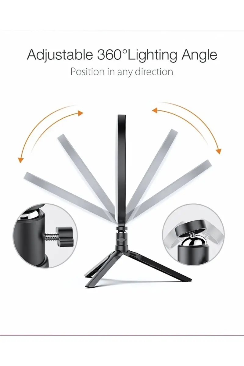 Bluetooth-кольцевая светодиодная лампа 10 дюймов с настольной подставкой и пультом управления от EN SİGA и MEGA PLUS - идеальное освещение для макияжа и съемок, разработанное специально для блогеров, ютуберов и авторов контента TikTok. Этот инновационный продукт был разработан для обеспечения профессионального освещения, необходимого авторам контента, дома или в студии. Продукт оснащен 120 высококачественными светодиодными лампами и обеспечивает впечатляющую светоотдачу в 3500 люмен. Это гарантирует, что ваши снимки всегда будут четкими, яркими и профессиональными. Благодаря регулируемой цветовой температуре вы можете получить желаемый тон в диапазоне от 3200K до 6500K. Это позволяет адаптироваться к различным условиям съемки и личным предпочтениям. Хотите ли вы создать теплую и уютную атмосферу или получить более холодный и живой вид, эта кольцевая лампа обеспечит вам гибкость. Три различных варианта освещения - белый свет, дневной свет и смесь белого и дневного света - обеспечивают освещение, подходящее для любой среды и потребностей. Эта функция особенно полезна в различных сценариях, таких как нанесение макияжа, обзоры продуктов и портретная съемка. Кольцевой светильник диаметром 10 дюймов / 26 см освещает большую площадь и равномерно освещает ваше лицо или объект. Благодаря регулируемой интенсивности света вы можете уменьшить или увеличить свет от 1% до 100%. Это позволит вам создать желаемую атмосферу и контролировать атмосферу ваших снимков. Продукт питается от USB-источника питания и потребляет всего 40 Вт, что делает его отличным выбором с точки зрения энергоэффективности. Держатель для телефона, вращающийся на 360 градусов кронштейн и настольная подставка, входящие в комплект, помогут вам легко разместить устройства и найти лучший угол съемки. Эти функции особенно полезны для динамичных съемок или съемок с разных углов. С помощью Bluetooth-пульта дистанционного управления фотографировать и снимать видео очень легко. Просто подключитесь через Bluetooth, чтобы делать снимки без помощи рук и сосредоточиться на создании контента. Это особенно полезно в ситуациях, когда руки должны быть свободны, например, при обучении макияжу или демонстрации продукта. Этот продукт с элегантным дизайном в черном цвете BT идеально подходит как для профессиональных, так и для начинающих пользователей. Благодаря удобству и высокой производительности в повседневной жизни он делает процесс создания контента более эффективным и приятным. Независимо от того, являетесь ли вы начинающим автором контента или опытным профессионалом, эта кольцевая лампа всегда обеспечит вам наилучшие результаты.