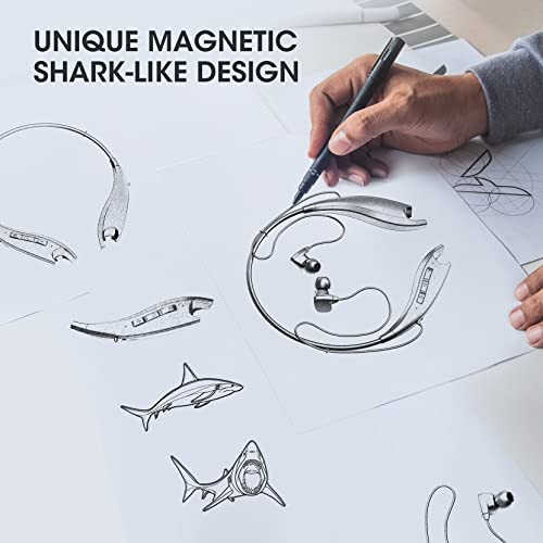 Bluetooth-наушники YOSDOM с шейным ободом обеспечивают наилучший звуковой опыт с более чем 24 часами времени воспроизведения, вибрацией вызова, дизайном в виде челюсти акулы, беспроводными наушниками, шумоподавлением, встроенным микрофоном и водонепроницаемостью IPX7.