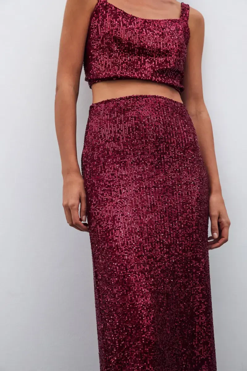 Создайте гламурный стиль с топом с пайетками - Бордовый!