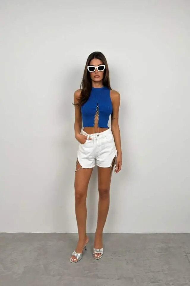 Добавьте блеск своему стилю с помощью кроп-топа с каменной отделкой и вырезом! Эта эксклюзивная дизайнерская блузка сочетает в себе элегантность и современность, что делает ее незаменимой вещью в вашем гардеробе. Изящные каменные детали в области декольте являются отличительной чертой блузки и позволяют вам ослеплять всех вокруг. Укороченный крой обеспечивает модный вид и позволяет создавать различные комбинации. Будь то элегантное мероприятие с юбкой с высокой талией или повседневный образ с джинсами, эта блузка будет сопровождать вас в любой ситуации. Благодаря легкой и удобной ткани, она обеспечивает комфортное использование в течение всего дня. Размер M/38 на модели показывает, что изделие подходит для разных размеров, и вы можете выбрать наиболее подходящий размер для себя и добиться идеальной посадки. Кроп-топ с каменной отделкой и вырезом - это не просто блузка, это вещь, которая отражает ваш стиль и заставляет вас чувствовать себя особенной. Эта блузка, выполненная с заботой и качеством в каждой детали, станет инвестицией, которой вы будете наслаждаться долгие годы в своем гардеробе. Закажите сейчас и наслаждайтесь элегантностью!