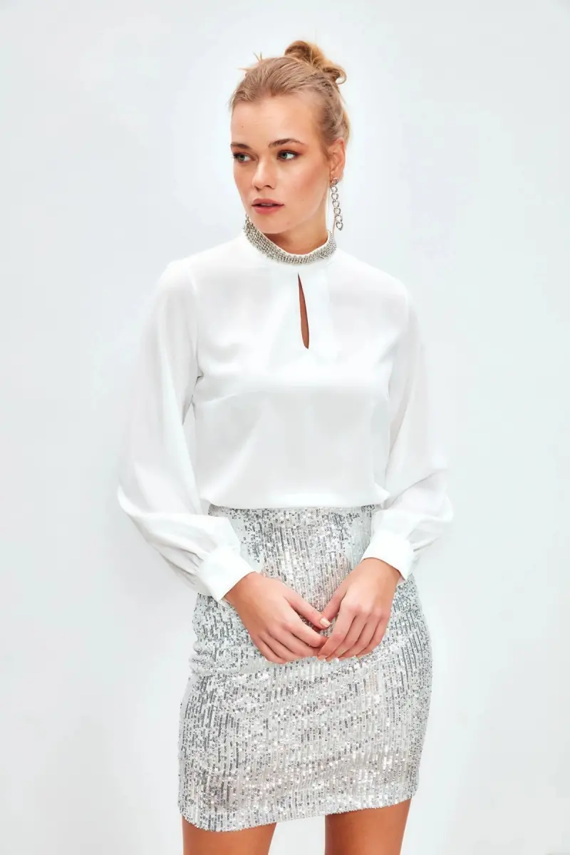 Эта блузка цвета экрю - идеальный выбор для дополнения ваших повседневных нарядов, благодаря своему элегантному дизайну и стильному аксессуару для воротника. Изготовленная из мягкой и удобной ткани, блузка обеспечивает комфорт в течение всего дня, помогая вам завершить свой современный и стильный образ.