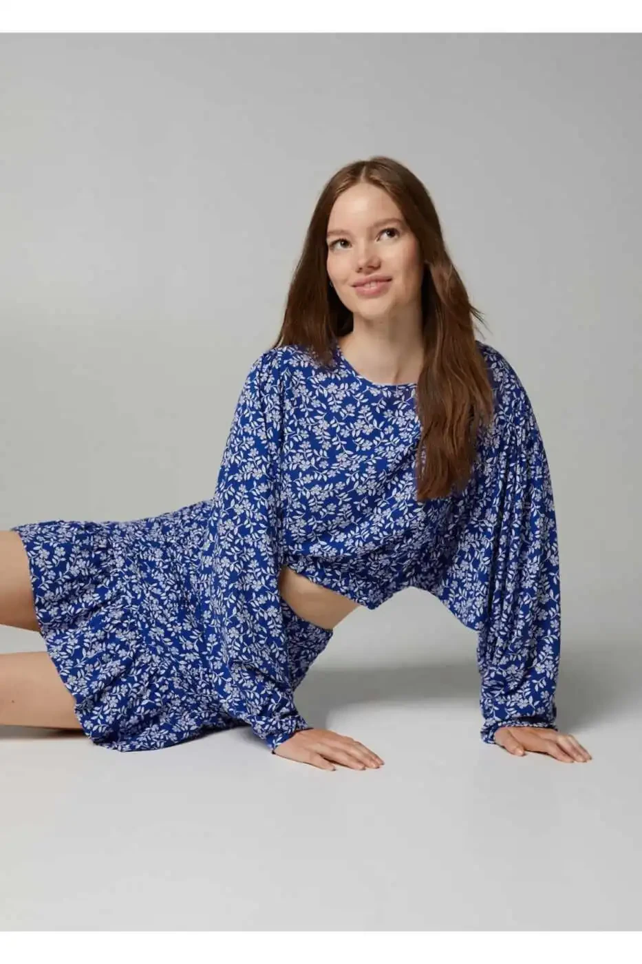 Блузка со стандартной посадкой и прямым кроем, которая подходит для всех типов телосложения, идеально подходит для переходных сезонов благодаря своим длинным рукавам. Ткань из тюля придает ей легкий и изысканный вид, а также повышает воздухопроницаемость. С цветочным узором эта блузка создает женственный и яркий стиль, который понравится молодым возрастным группам.