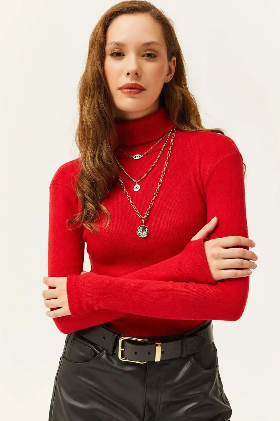 Женская красная водолазка с удлиненным рукавом и открытыми пальцами | BLZ-19001644