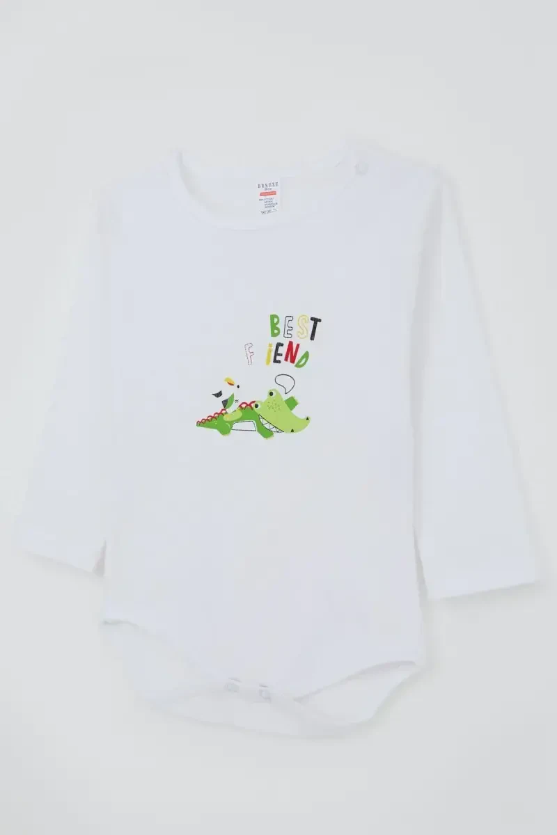 Разработанный специально для нежной кожи младенцев, боди для мальчика с застежкой-кнопкой и принтом крокодила изготовлен из 100% хлопка. Идеально подходит для повседневного использования. Благодаря застежке-кнопке легко надевается и снимается. Имеет стильный вид благодаря принту крокодила. Подходит для младенцев в возрасте от 9 месяцев до 3 лет. Вот созданное описание продукта:**Описание продукта**Представляем боди для мальчика с застежкой-кнопкой и принтом крокодила, созданный для маленьких искателей приключений! Этот боди, тщательно разработанный с учетом комфорта и стиля вашего ребенка, является идеальным выбором как для повседневного использования, так и для особых случаев. Он станет незаменимой вещью в гардеробе вашего ребенка благодаря своей мягкой текстуре и милому принту крокодила.Этот боди изготовлен из 100% хлопка, который не вредит нежной коже вашего ребенка. Благодаря своей хлопковой структуре он позволяет коже вашего ребенка дышать, предотвращает потоотделение и обеспечивает комфорт в течение всего дня. Это продукт, который мамы могут уверенно выбирать благодаря своему натуральному составу, который сводит к минимуму риск аллергических реакций.Благодаря застежке-кнопке процессы одевания и раздевания очень практичны. Он обеспечивает большое удобство, особенно во время смены подгузников. Кнопки изготовлены из качественного материала, который не ограничивает движения вашего ребенка и не раздражает его кожу. Таким образом, ваш ребенок может свободно двигаться и играть.Стильный и забавный принт крокодила придает боди особый вид. Он отражает стиль вашего ребенка своими яркими цветами и милым дизайном. Краски, используемые в печати, не содержат вредных для здоровья веществ и устойчивы к стирке. Он разработан для длительного использования.Боди для мальчика с застежкой-кнопкой и принтом крокодила предлагает широкий диапазон размеров для младенцев в возрасте от 9 месяцев до 3 лет. Вы можете добиться идеальной посадки, выбрав размер, соответствующий возрасту и весу вашего ребенка. Продукт имеет эластичную структуру, которую можно легко использовать в процессе роста вашего ребенка.Этот боди не только обеспечивает стильный внешний вид, но и заботится о здоровье вашего ребенка. Он предлагает гигиеничное использование благодаря своей легкой очистке и стирке. Возможность машинной стирки — большое преимущество для занятых мам.Боди для мальчика с застежкой-кнопкой и принтом крокодила — идеальный выбор, сочетающий в себе комфорт и стиль вашего ребенка. Это может быть отличным подарком как для себя, так и для своих близких. Добавив этот милый боди в гардероб вашего ребенка, вы можете придать ему удобный и стильный вид.**Характеристики продукта*** Изготовлен из 100% хлопка.* Подходит для чувствительной кожи.* Идеально подходит для повседневного использования.* Благодаря застежке-кнопке легко надевается и снимается.* Стильный принт крокодила.* Подходит для младенцев в возрасте от 9 месяцев до 3 лет.* Можно стирать в машине.* Сводит к минимуму риск аллергических реакций.* Краски, используемые в печати, не содержат вредных для здоровья веществ.* Подходит для длительного использования.* Удобный крой, не стесняющий движений ребенка.* Используются качественные кнопки.* Ткань, предотвращающая потоотделение.* Позволяет коже ребе