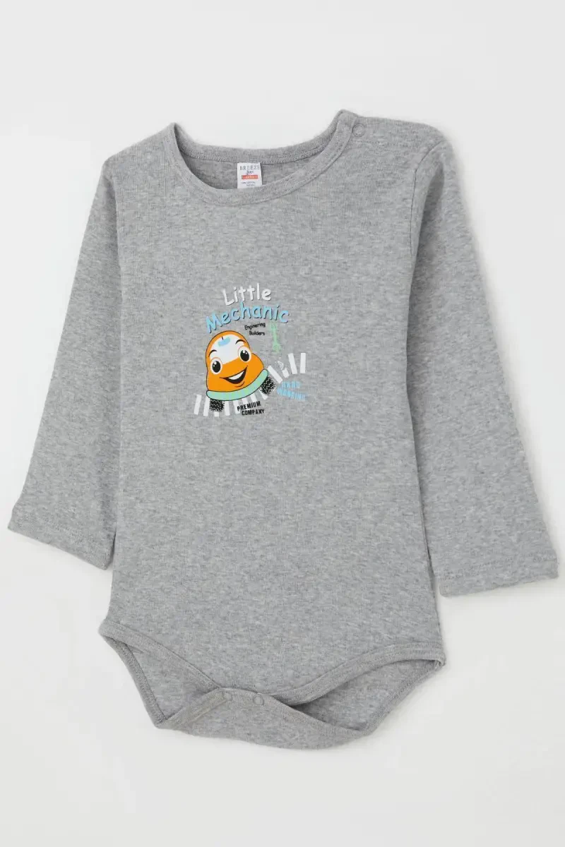 Боди для маленьких мальчиков с кнопками "Маленький ремонтник" добавит веселую и практичную нотку в гардероб маленьких джентльменов. Сочетание темно-серого меланжа и темно-серого меланжа создает стильный и современный вид, а милый принт ремонтника поможет вашему малышу выразить свой стиль. Это боди с длинными рукавами, которое можно с комфортом носить в течение четырех сезонов, изготовлено из 100% хлопчатобумажной ткани, подходящей для нежной кожи вашего ребенка. Деталь с круглым вырезом облегчает надевание и снятие, а нижняя часть с кнопками делает смену подгузников практичной. Это модное боди идеально подходит для младенцев от 9 месяцев до 3 лет и дополнит стиль вашего ребенка как в повседневной жизни, так и в особых случаях. Этот продукт, произведенный с качеством Breeze Girls & Boys, не содержит никаких веществ, которые могли бы нанести вред здоровью вашего ребенка. Это боди можно стирать при температуре 40 градусов, оно долговечно и прослужит долго. Это боди, разработанное с учетом комфорта и здоровья вашего ребенка, также понравится мамам. Принт на нем сохранит свою яркость в течение длительного времени, если следовать инструкциям по стирке. Благодаря нормальному крою, не ограничивающему свободу движений вашего ребенка, он будет чувствовать себя комфортно в течение всего дня. С этим боди, которое станет незаменимым в его гардеробе, ваш ребенок всегда будет выглядеть стильно и мило. Помните, что этот продукт доставляется к вашей двери с гарантией Trendyol, и у вас есть возможность бесплатного возврата в течение 15 дней, если вы не удовлетворены. Если вы хотите всего наилучшего для своего ребенка, это боди идеально подходит для вас!