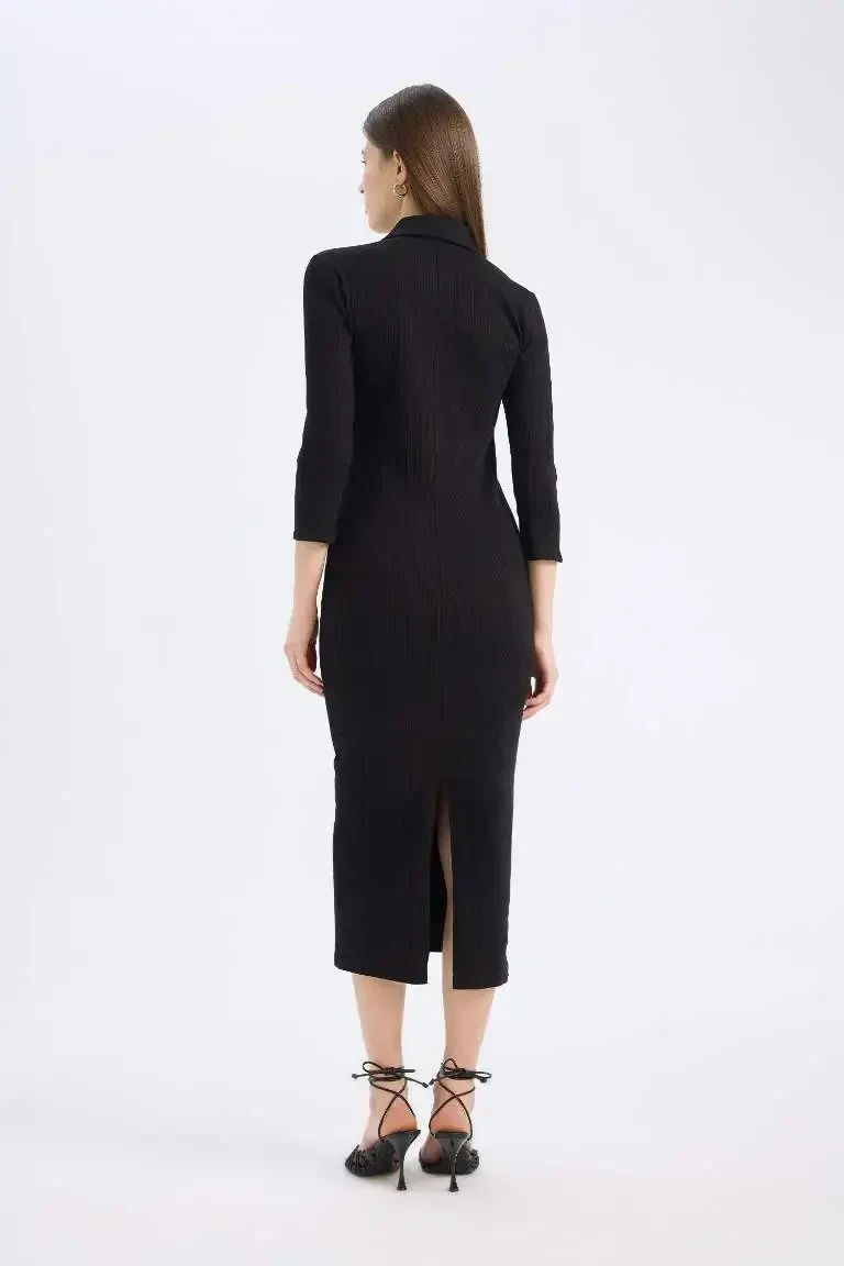 Облегающее платье-миди с короткими рукавами в рубчик, с воротником поло и базовым прямым силуэтом имеет элегантный и современный дизайн, подчеркивающий ваши женственные формы. Деталь с воротником поло придает платью изысканный вид, а короткие рукава обеспечивают как стильный, так и удобный вариант ношения. Трикотажная ткань в рубчик нежно облегает ваше тело, создавая безупречный силуэт. Благодаря длине миди его можно легко надевать как на повседневные мероприятия, так и на светские мероприятия. Черный цвет легко сочетается с любыми аксессуарами и обувью, что позволяет создавать разные образы. Наденьте ли вы его с туфлями на каблуках для создания шикарного образа или с кроссовками для создания более непринужденного стиля, это платье дополнит ваш стиль в любой ситуации. Благодаря своему базовому дизайну это платье является вневременной вещью, которая станет незаменимой частью вашего гардероба. Эластичная и удобная ткань обеспечивает свободу движений в течение всего дня, а облегающий крой повышает вашу уверенность в себе. Это идеальный выбор для женщин, которые не хотят жертвовать своим стилем как в повседневной жизни, так и в особых случаях. Облегающее платье-миди с короткими рукавами в рубчик, с воротником поло и базовым прямым силуэтом - это универсальная и элегантная вещь, отражающая стиль современной женщины. Это платье, которое выбирают те, кто ищет стиль и комфорт в одном лице, позволит вам привлечь к себе внимание в любой обстановке. Этот особый дизайн, который обязательно должен быть в вашем гардеробе, всегда подарит вам безупречный внешний вид. Это платье, сочетающее в себе благородство черного цвета и комфорт трикотажной ткани в рубчик, придает вашему стилю новое измерение. Откройте для себя облегающее платье-миди с короткими рукавами в рубчик, с воротником поло и базовым прямым силуэтом прямо сейчас, чтобы почувствовать себя особенной и подчеркнуть свой стиль!