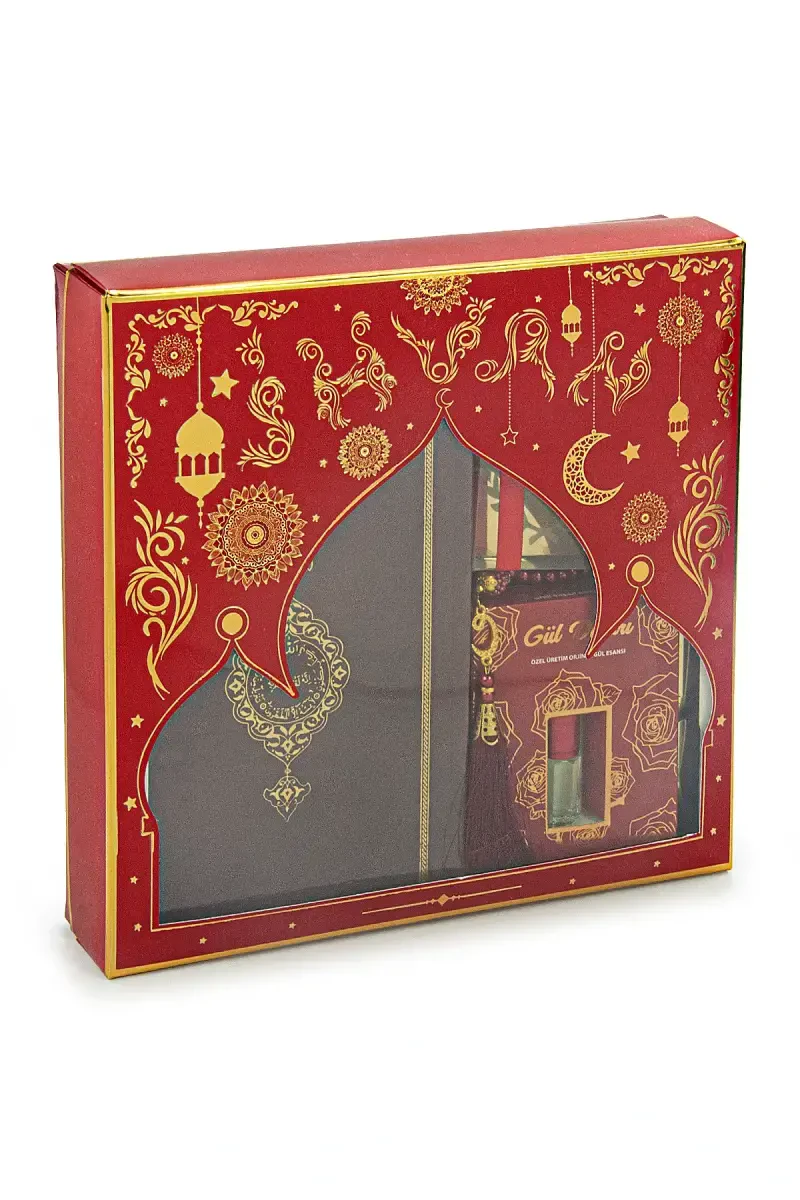 Bohca Seti: Kuran-i Kerim & Seccade - Bordo Kadife Ceyizlik Hediye