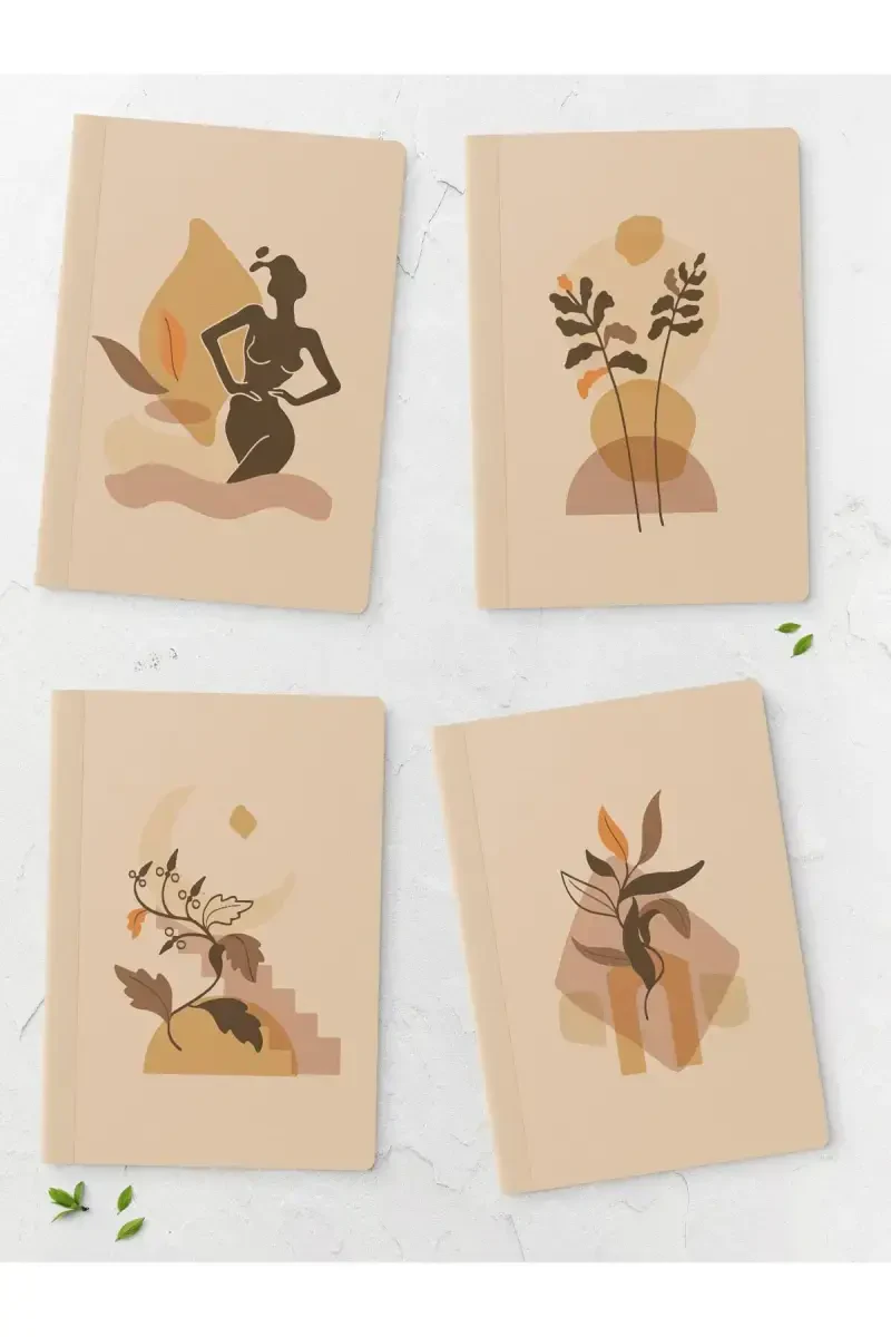 The Boho Unlined Notebook Set aims to add a bohemian touch to your daily life with its minimalist design and natural color tones. The four notebooks included in the set offer an ideal solution for your different projects, notes or drawings. The 14cm x 20cm dimensions of each notebook allow it to be easily carried in your bag, while its 64-page capacity offers long-term use. The beige color gives the notebooks a warm and inviting look, while the lack of lines allows you to write and draw freely without limiting your creativity. Whether you keep a travel diary, write inspiring quotes, or draw intricate patterns, the Boho Unlined Notebook Set is always ready to be with you. Its high-quality paper structure is compatible with different pen types, preventing ink from spreading or bleeding through to the back of the page, maximizing your writing and drawing experience. This set can be a great gift option for yourself, as well as a meaningful gift you can give to your loved ones to support their creativity. At the office, at school, at home or while traveling, the Boho Unlined Notebook Set will inspire you and help you organize your thoughts. With its stylish design and practical use, this notebook set will become an indispensable part of your daily life. Every detail of this set has been carefully designed to appeal to your aesthetic taste and satisfy you with its functionality. Discover your creativity with the Boho Unlined Notebook Set, express your thoughts freely and make every moment special.