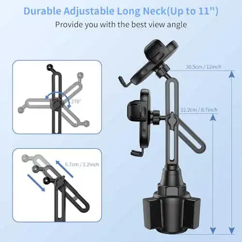 - Длинная и регулируемая шея: Длинная и регулируемая шея бокилино Cup Phone Mount позволяет вам просматривать телефон под любым углом, который вам нравится. Вы можете легко отрегулировать высоту и угол шеи, чтобы найти наиболее удобный угол обзора во время поездки.
