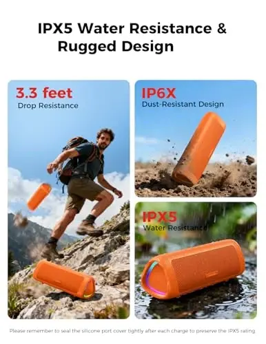 [Immersive Sound Experience & Dual Connectivity] Experience unparalleled sound quality with this wireless Bluetooth speaker's 2 drivers and advanced technology that delivers powerful, well-balanced sound with minimal distortion. Connect two speakers together to create an immersive stereo sound experience and fill any room with powerful sound. Perfect for gaming, music, and movie playback [Tough & Weather-Resistant] Engineered to handle rough use and adverse weather conditions, this speaker features a durable design and an IPX5 rating for protection against water splashes and spills. It's an ideal choice for outdoor events, and is perfect for use at parties, at the pool, on the beach, while camping or hiking, and more [Long-lasting Playtime & Extended Bluetooth Connectivity] Experience extended playtime with up to 20 hours(50% Vol and light off) per charge and extended wireless range with Bluetooth 5.3, reaching up to 33 feet from your device. The multicolor lights on the speaker can also be turned off with a simple button press to save the battery and adapt to your needs. Keep in mind that the actual playtime can vary depending on volume level, audio content, and usage [Vibrant Light Effects] Bring a new level of excitement to your party with the dynamic multi-color light show that syncs to the beat of the music, you can easily customize the light effects to suit your preference by simply pressing the Light button. Make any gathering more memorable with these visually stunning light effects that will elevate the atmosphere [Everything You Need] The package includes 1 waterproof Bluetooth speaker (Item Dimensions D x W x H: 7.87"D x 2.76"W x 2.81"H, Weight: 1.28lb), 1 Type-C charging cable, and a quick start guide, all backed by lifetime technical support. The built-in microphone allows for hands-free phone calls and you can also play music from other devices using the AUX jack (not included). It's a perfect gift for men and women. It is also suitable as white elephant gifts for adult, stocking stuffers for men and women, Christmas gifts,birthday gifts, mothers day gifts,fathers day gifts,Valentine's Day,mens gifts,and various anniversary gifts for him.