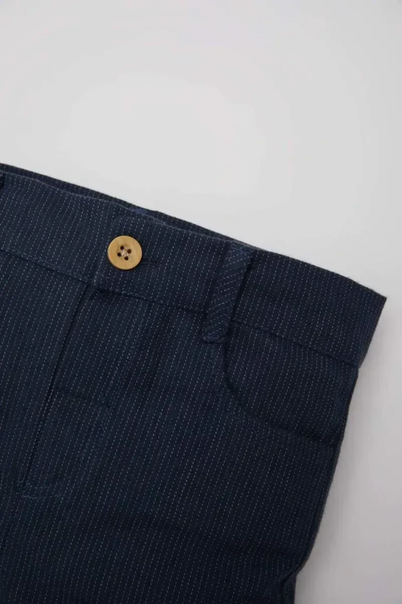 Yuqori sifatli gabardin matodan tikilgan shim nafas oladigan xususiyatga ega va bolangizning terisini bezovta qilmaydi. Chiziqli naqsh uslubga qo'shimcha o'lcham qo'shadi. Elastik kamar bolangizning erkin harakatlanishiga imkon beradi va kun bo'yi qulaylik yaratadi.