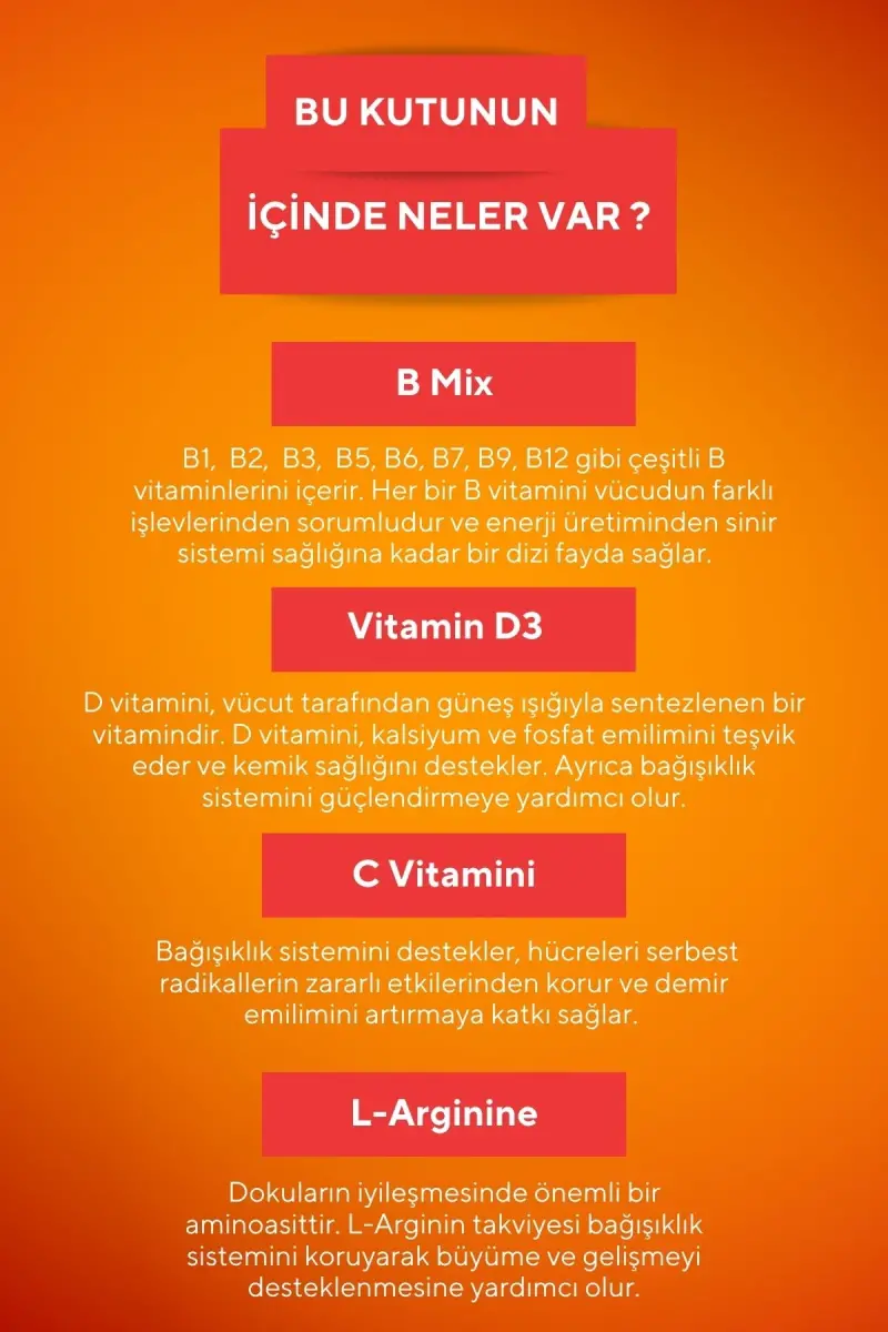 B vitamini kompleksi deb ham ataladigan qo'shimcha shakli. B vitamini kompleksi vitamin B1, vitamin B2, vitamin B3, vitamin B5, vitamin B6, vitamin B7, vitamin B9 va vitamin B12 kabi turli xil B vitaminlarini o'z ichiga oladi. Har bir B vitamini tananing turli funktsiyalaridan javobgar va energiya ishlab chiqarishdan asab tizimi sog'lig'iga qadar turli xil foyda keltiradi.