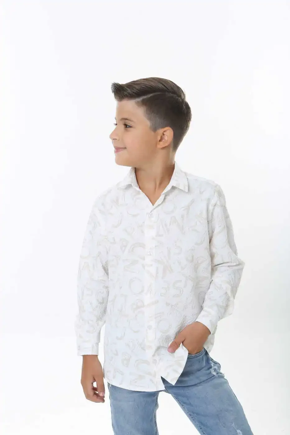 Kichkina shahzodangizni zamonaviy va qulay kiyintirish uchun ajoyib tanlov bo'lgan Bolalar uchun oq gofri mato bej harf naqshli ko'ylak, yumshoq to'qimasi va nafis dizayni bilan ajralib turadi. Gofri matoning nafas oladigan tuzilishi, farzandingizning kun bo'yi qulay bo'lishini ta'minlaydi, nafis bej harf naqshlari esa zamonaviy ko'rinish beradi.