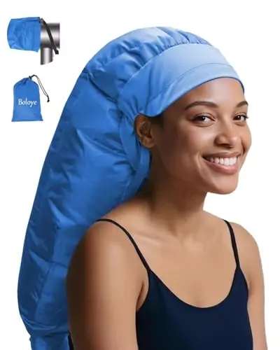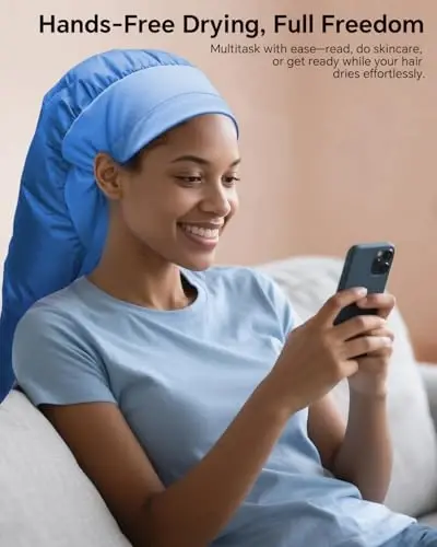 ⌛ Fast, Even Drying – Save Time, Get Results: Achieve up to 50% faster drying with engineered 360° airflow and a stretchable hose that diffuses heat evenly from root to tip. This hooded hair dryer cap helps cut your styling or deep-conditioning sessions in half while keeping curls healthy, defined, and frizz-free. A smart alternative to bulky sit under hair dryer for home units. 🌿 Anti-Frizz Support – Smoother, Softer, Curl-Friendly: Use with rollers, curlformers, or nourishing hair oils—this bonnet hair dryer attacModazoneent helps reduce frizz and flyaways while locking in moisture. Enjoy soft, silky hair and defined, healthy curls. 📏 Extra-Large Capacity – Roomy Enough for Any Hairstyle: At 28.5 inches, this oversized hooded hair dryer for home use offers generous space for long, thick, or high-volume hair. It also fits rollers, flexi-rods, and clips comfortably without flattening curls. Whether you’re doing deep treatments or blow-dry styling, you’ll enjoy more room, better airflow, and complete comfort. 💎 Soft Yet Durable – Built for Comfort & Daily Use: Crafted with a skin-friendly polyester taffeta headband for a gentle feel and a rugged nylon body with reinforced stitching, this portable hair dryer bonnet cap combines comfort with long-lasting durability. It’s tear-resistant, hand-washable, and shape-retaining, designed to handle repeated use without losing shape. 🎁 A Perfect Gift – Compact, Practical, and Travel-Ready: Thoughtfully packaged in a reusable storage bag, this hair dryer cap folds neatly down to 7.8 x 7.8 inches for easy storage or travel. A practical, space-saving gift idea for birthdays, Mother’s Day, or holidays—ideal for anyone who wants salon-style results from a hooded hair dryer at home without the bulk.