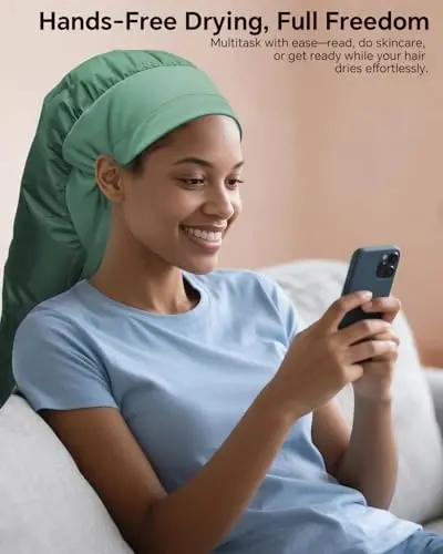 ⌛ Fast, Even Drying – Save Time, Get Results: Achieve up to 50% faster drying with engineered 360° airflow and a stretchable hose that diffuses heat evenly from root to tip. This hooded hair dryer cap helps cut your styling or deep-conditioning sessions in half while keeping curls healthy, defined, and frizz-free. A smart alternative to bulky sit under hair dryer for home units. 🌿 Anti-Frizz Support – Smoother, Softer, Curl-Friendly: Use with rollers, curlformers, or nourishing hair oils—this bonnet hair dryer attacModazoneent helps reduce frizz and flyaways while locking in moisture. Enjoy soft, silky hair and defined, healthy curls. 📏 Extra-Large Capacity – Roomy Enough for Any Hairstyle: At 28.5 inches, this oversized hooded hair dryer for home use offers generous space for long, thick, or high-volume hair. It also fits rollers, flexi-rods, and clips comfortably without flattening curls. Whether you’re doing deep treatments or blow-dry styling, you’ll enjoy more room, better airflow, and complete comfort. 💎 Soft Yet Durable – Built for Comfort & Daily Use: Crafted with a skin-friendly polyester taffeta headband for a gentle feel and a rugged nylon body with reinforced stitching, this portable hair dryer bonnet cap combines comfort with long-lasting durability. It’s tear-resistant, hand-washable, and shape-retaining, designed to handle repeated use without losing shape. 🎁 A Perfect Gift – Compact, Practical, and Travel-Ready: Thoughtfully packaged in a reusable storage bag, this hair dryer cap folds neatly down to 7.8 x 7.8 inches for easy storage or travel. A practical, space-saving gift idea for birthdays, Mother’s Day, or holidays—ideal for anyone who wants salon-style results from a hooded hair dryer at home without the bulk.