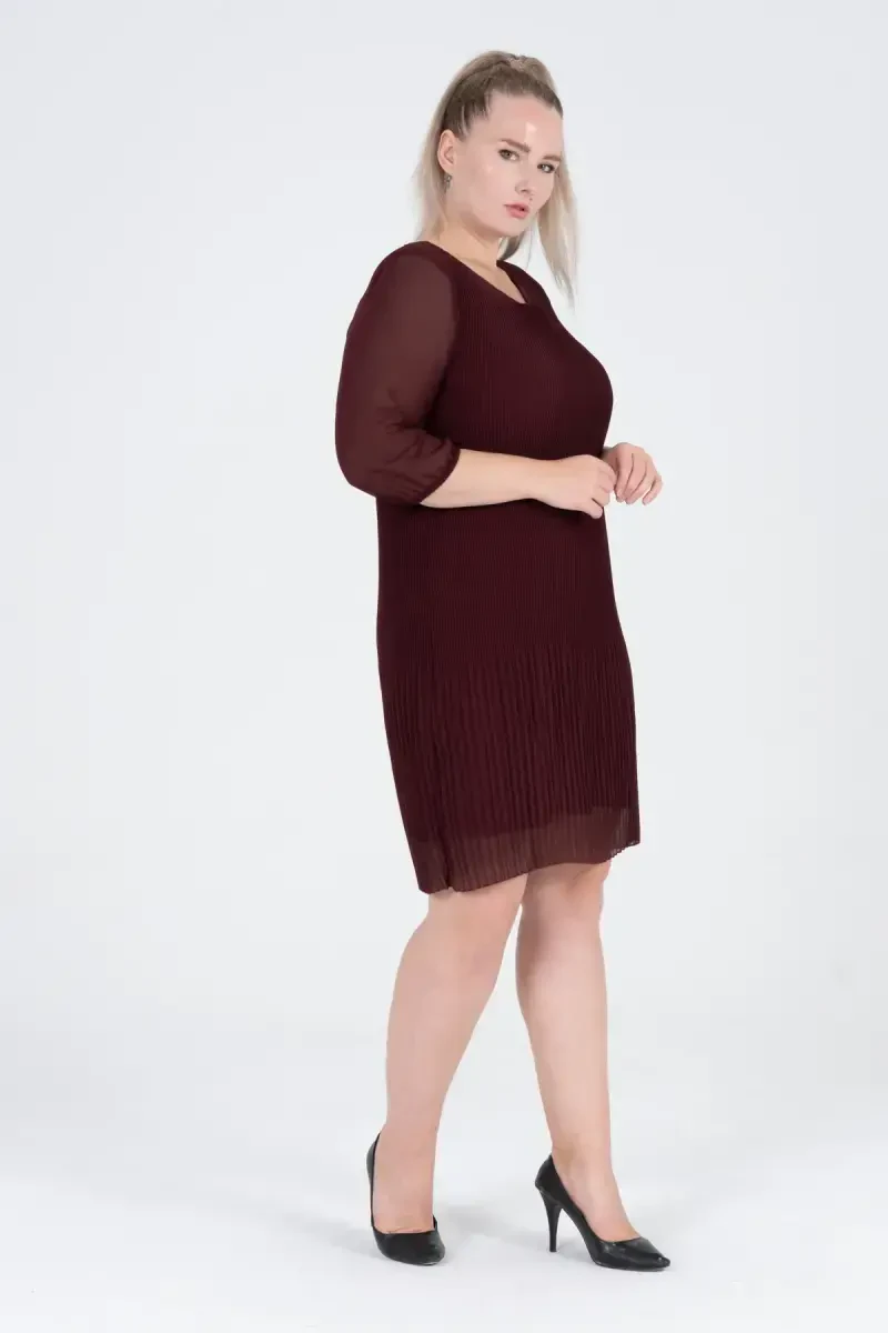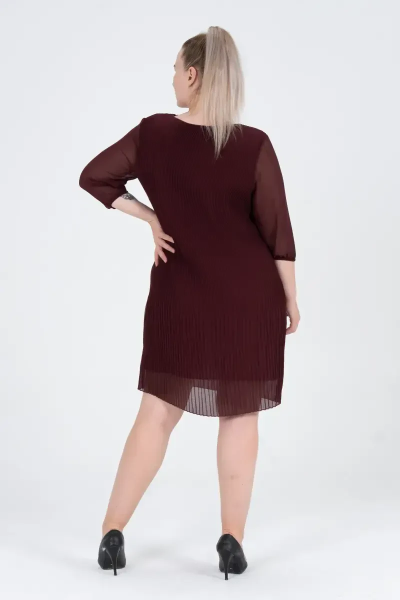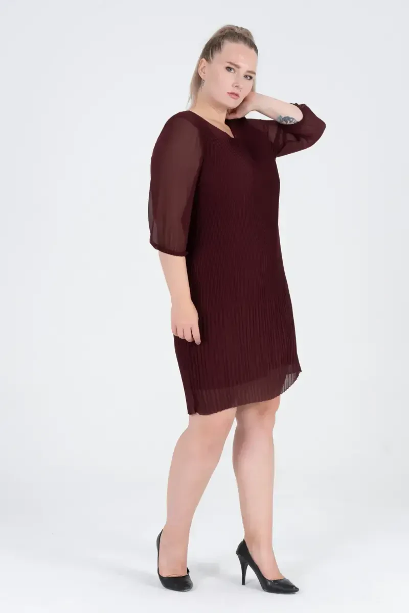 Büyük Beden Piliseli Şifon Elbise - BORDO, şıklığı ve rahatlığı bir araya getiren özel bir tasarımdır. SHAHIQA markasının kalitesiyle sunulan bu elbise, gardırobunuzun vazgeçilmez parçası olmaya aday. Kendine özgü piliseli şifon kumaşı ve bordo rengi ile dikkat çeken bu elbise, özel davetlerden günlük kullanıma kadar geniş bir yelpazede tercih edilebilir. Yuvarlak yakası ve kolsuz tasarımı sayesinde hem modern hem de zarif bir görünüm sunar. Astarsız yapısı, özellikle sıcak havalarda rahat bir kullanım imkanı sağlar. Kumaşındaki katlama detayları, elbiseye hareket ve farklılık katarken, düz formu her vücut tipine uyum sağlar. Şık ve özgün tasarımıyla Büyük Beden Piliseli Şifon Elbise, her ortamda stilinizi konuşturmanızı sağlar. Elbisenin boy uzunluğu 100 cm olup, %100 polyester dokuma kumaştan üretilmiştir. Modelin üzerindeki beden 44'tür. Bu şık elbiseyi 15 gün içinde ücretsiz iade edebilirsiniz. Unutmayın, bu üründen en fazla 11 adet sipariş verebilirsiniz, daha fazlası Trendyol tarafından iptal edilebilir. Kurumsal siparişler için farklı limitler geçerlidir. Büyük Beden Piliseli Şifon Elbise ile tarzınızı yansıtın!