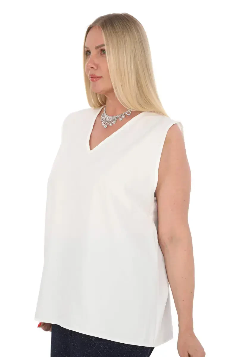 Большой Размер Нарядная Блузка | Без Рукавов Белая Элегантность | GLS6002