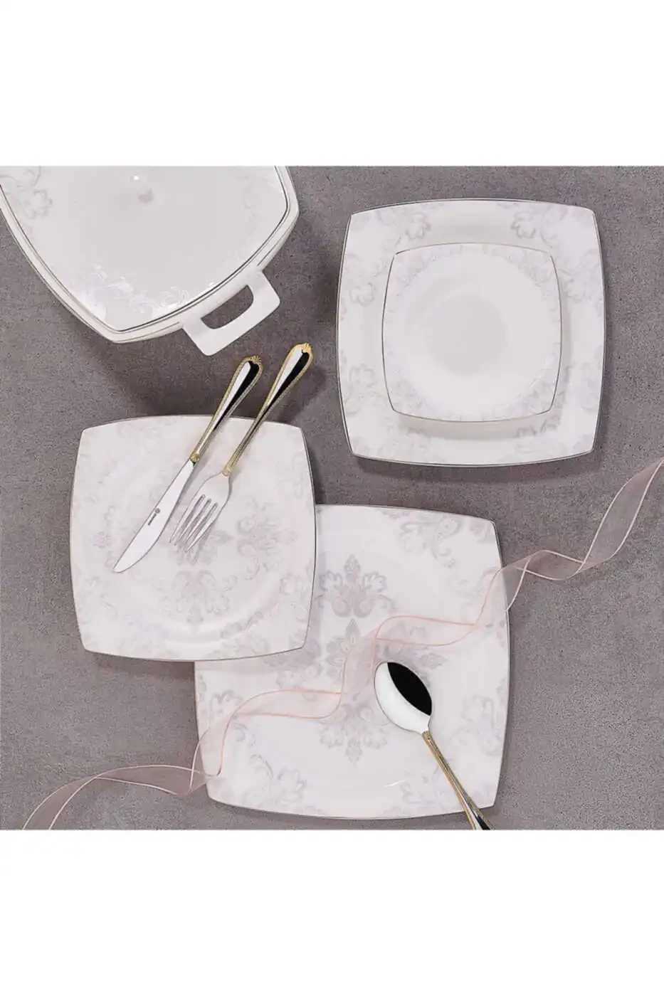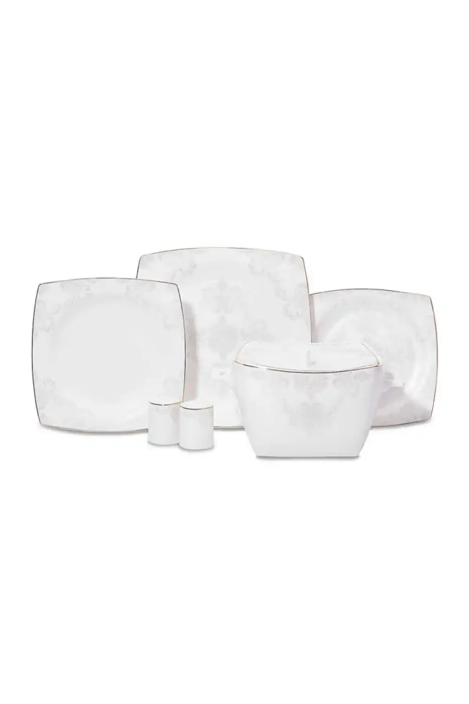 The Bone Selection Square Dinner Set complements any table with its stylish and modern design. Its square shape adds a unique touch to your table, creating a more modern look. The set includes 12 dinner plates, 12 soup bowls, 12 dessert plates, 12 coffee cups, 12 saucers and 1 gravy boat.