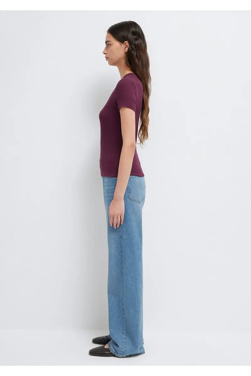 бордовая футболка, базовая футболка, приталенная футболка, хлопковая футболка, футболка с круглым вырезом, футболка с коротким рукавом, повседневная футболка, женская футболка, облегающая футболка, повседневная футболка
