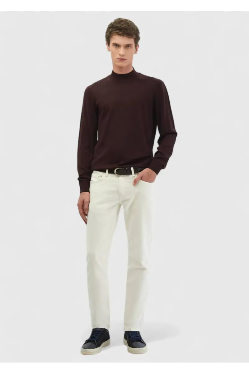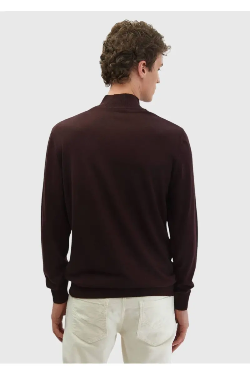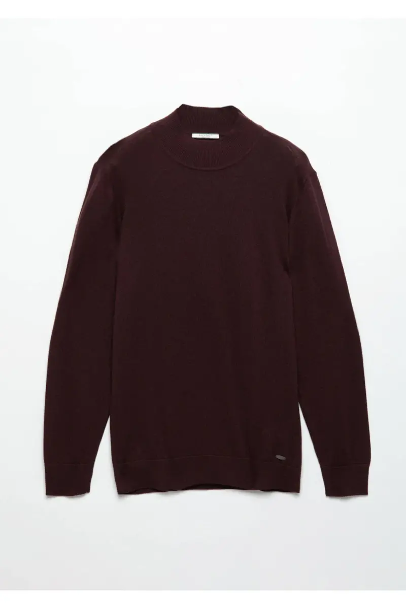 Bordo Bato Yaka Düz Örgü Yün Karışımlı Triko-Bordo