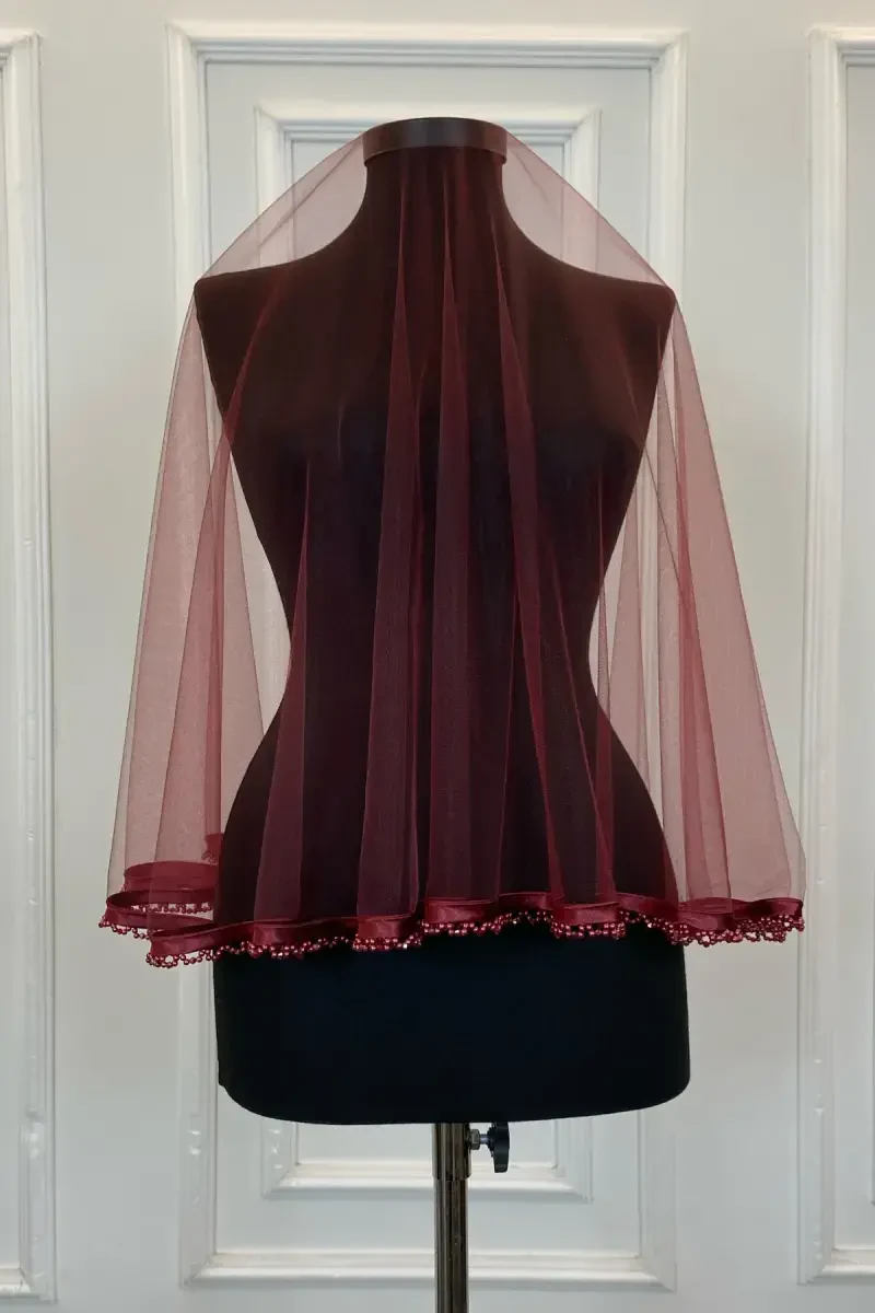 Bordo Xina to'plami: Fata, kamar, qo'l guli, qo'lqop, yuz pardasi (6 qism)