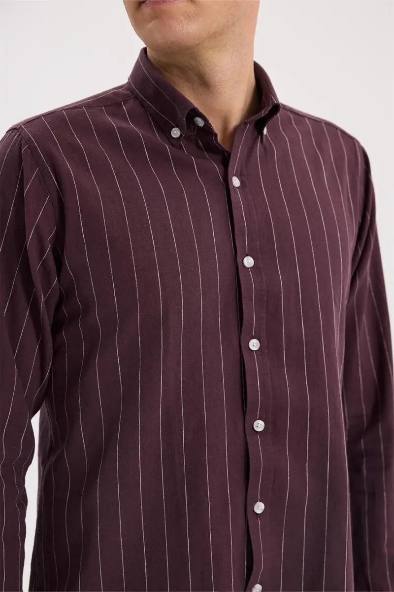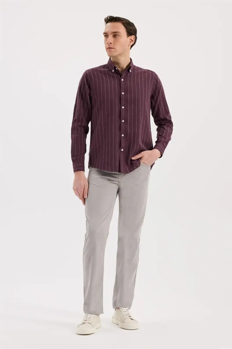 Bordo Comfort Fit Düğmeli Yaka Pamuklu Gömlek