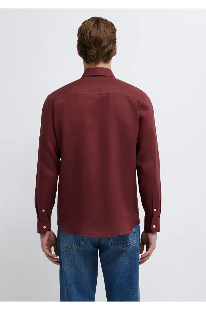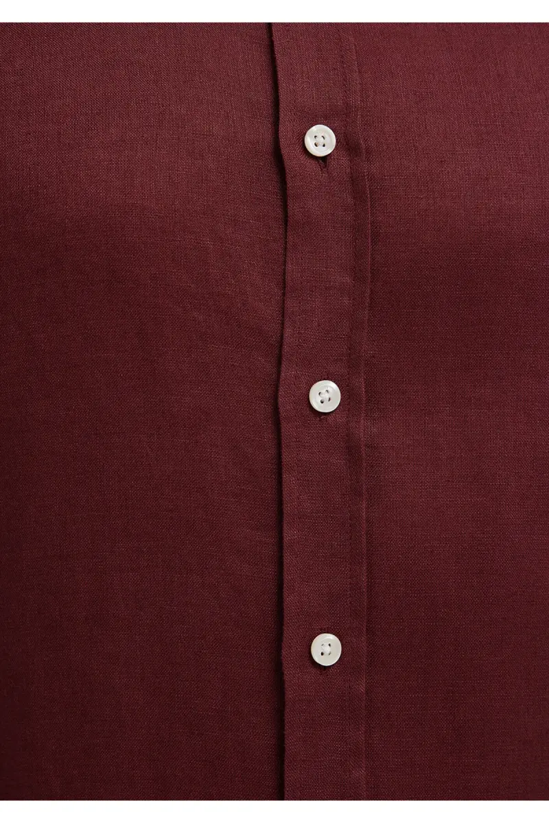 Bordo Keten Gömlek Slim Fit / Dar Kesim 0211466-70396-Bordo