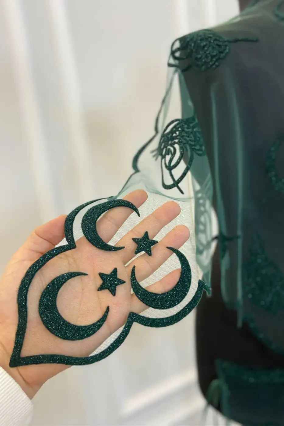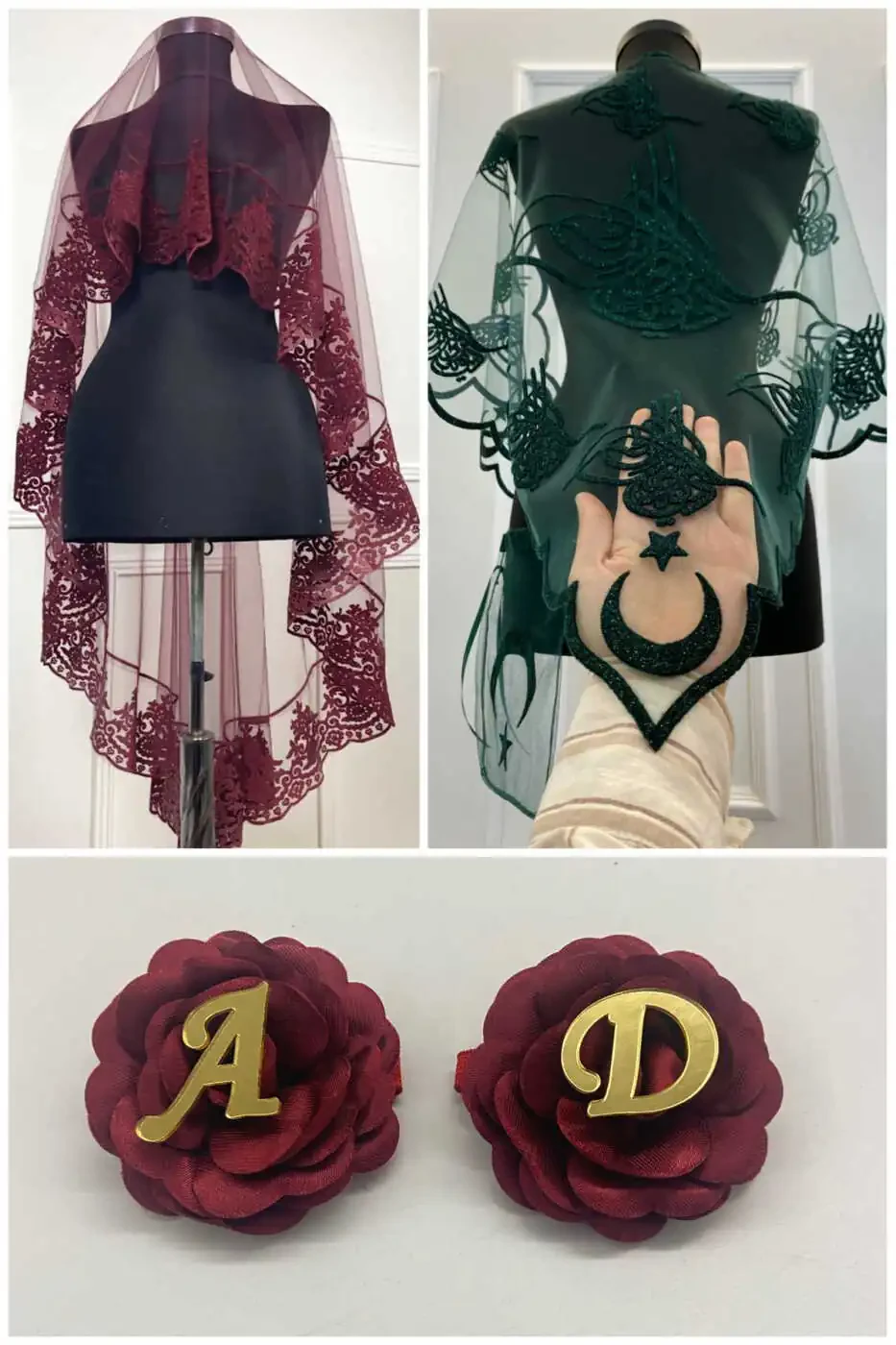 Kına gecenizin unutulmaz bir anı olmasını sağlayacak muhteşem bir set! Bordo rengi ile şıklığı ve zarafeti bir araya getiren bu set, kına gecenizi daha da özel hale getirecek. Set içerisinde, gelin duvağı, damat omuz örtüsü, şalı, el gülü ve daha birçok detay yer alıyor.