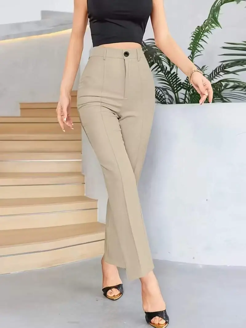 Bordo Renk Yüksek Bel Maskülen Kesim Kumaş Pantolon