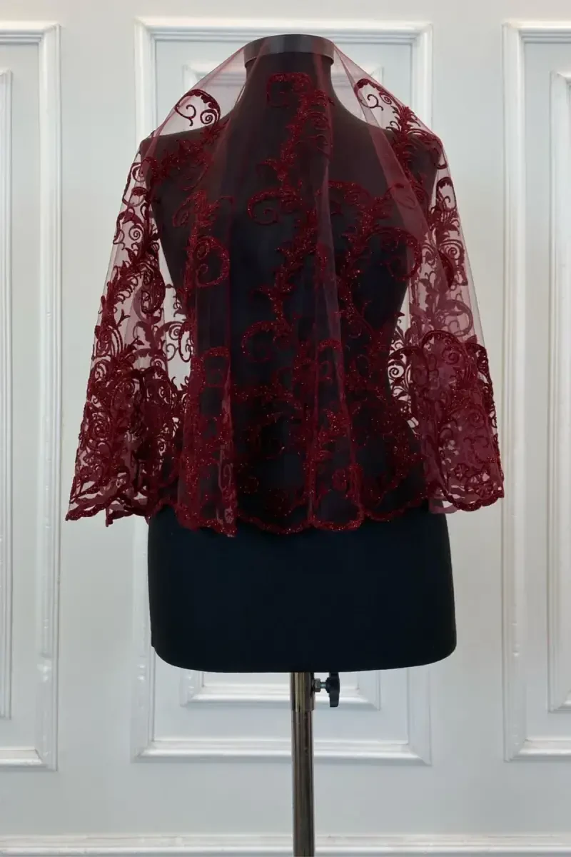Bordo Simli Komple Uzun Desenli Gelin Duvak Seti, özel günlerinizde, özellikle de kına gecenizde ve düğün töreninizde zarafetinizi ve ihtişamınızı ön plana çıkaracak eşsiz bir aksesuardır. Bu set, bordo renginin derin ve asil tonu ile simin ışıltısını bir araya getirerek büyüleyici bir görünüm sunar. Uzun ve akıcı tasarımı, hareketlerinize zarif bir dokunuş katarak sizi adeta bir peri masalının kahramanı gibi hissettirecektir. Komple uzun desen, duvağın her yerini kaplayarak göz alıcı bir detay oluşturur ve üzerinizde adeta bir sanat eseri taşımış gibi hissetmenizi sağlar. Bordo renkli simli tül, ışığı mükemmel bir şekilde yansıtarak her açıdan parıldamanızı ve dikkat çekmenizi sağlar. İster modern ister geleneksel bir gelinlik tercih edin, bu duvak seti her stile kolaylıkla uyum sağlayacak ve görünümünüzü tamamlayacaktır. Kına gecenizde kullanacağınız otantik kıyafetlerinizle mükemmel bir uyum yakalayarak geleneksel ve modern unsurları bir araya getirebilirsiniz. Düğün töreninizde ise, gelinliğinizle kusursuz bir bütünlük oluşturarak unutulmaz bir anı yaratmanıza yardımcı olur. Yüksek kaliteli malzemelerden üretilmiş olan bu duvak seti, uzun ömürlü kullanım sunar ve özel günlerinizde size eşlik edecek değerli bir hatıra olarak kalır. Hafif yapısı sayesinde gün boyu rahatça taşıyabilir ve hareket özgürlüğünüzü kısıtlamadan şıklığınızı koruyabilirsiniz. Özel tasarım detayları ve el işçiliği ile üretilmiş olan bu duvak seti, sadece bir aksesuar değil, aynı zamanda bir ifade biçimidir. Gelinliğinizin veya kına kıyafetinizin en önemli tamamlayıcısı olacak bu set ile tüm gözler üzerinizde olacak ve unutulmaz bir izlenim bırakacaksınız. Bordo Simli Komple Uzun Desenli Gelin Duvak Seti, sadece bir duvak değil, aynı zamanda bir hayalin, bir aşkın ve bir başlangıcın sembolüdür. Bu özel gününüzde kendinizi özel hissetmek ve hayallerinizi gerçeğe dönüştürmek için bu eşsiz duvak setini tercih edin. Her detayı özenle düşünülmüş bu set ile zarafetinizi ve şıklığınızı en üst seviyeye taşıyın ve unutulmaz bir gelin olun.