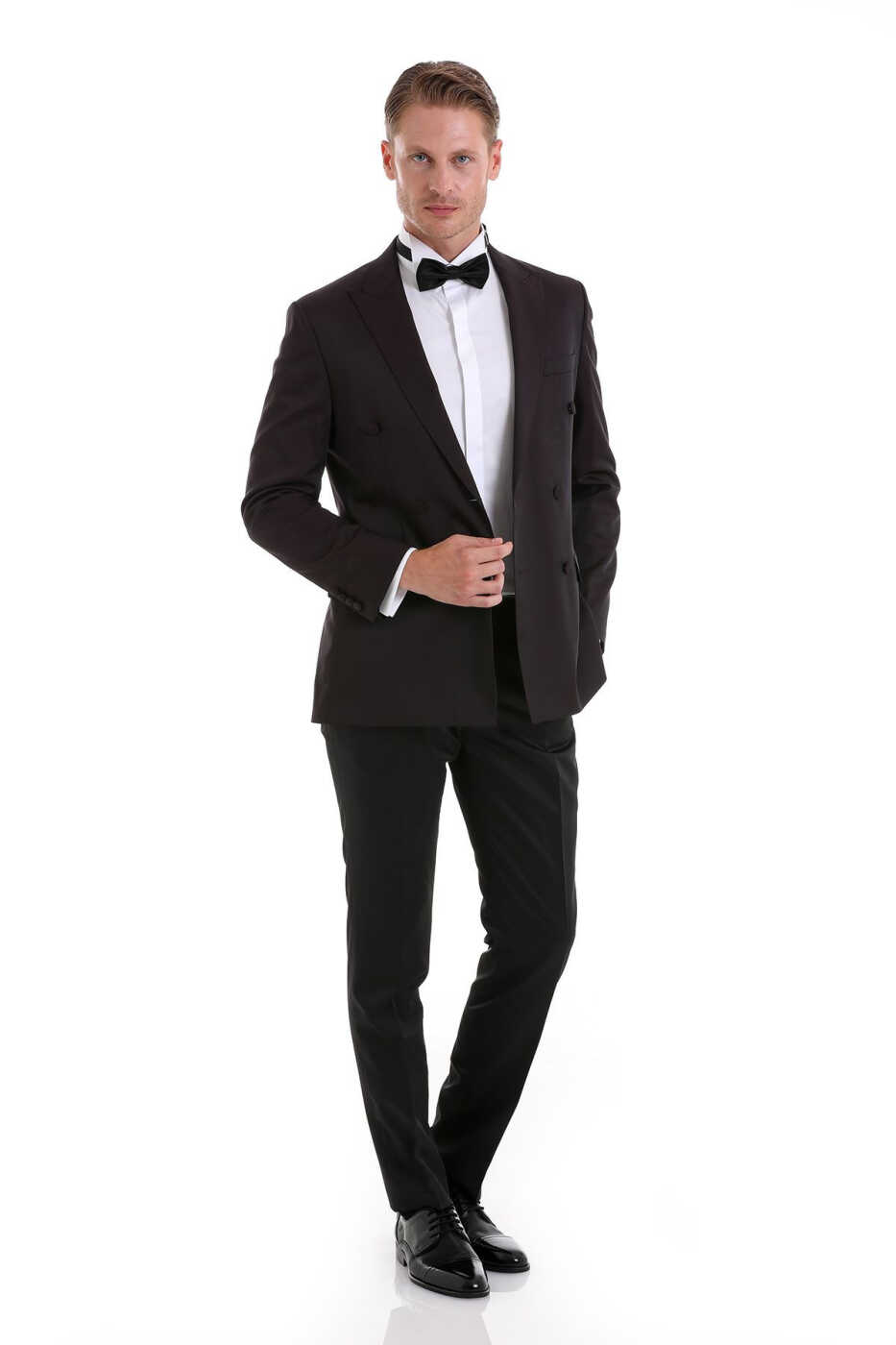 Bordo Slim Fit Düz Sivri Yaka Klasik Kruvaze Smokin Damatlık - Şıklığın Adresi