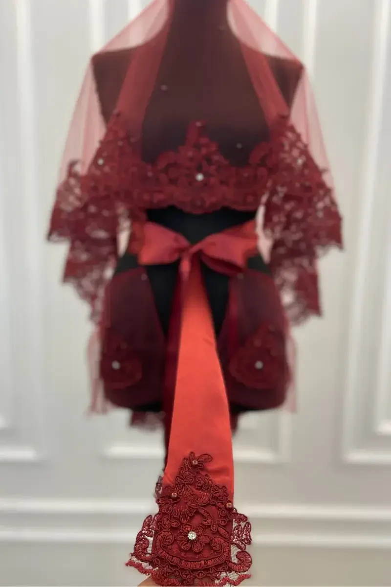 Приготовьтесь к незабываемому появлению с бордовым кружевным комплектом свадебной фаты с блестящими камнями и жемчугом! Этот полный комплект из 4 частей, тщательно разработанный Zeymerade, будет сопровождать вас во все ваши особенные моменты, от ночи хны до свадьбы, от церемонии забирания невесты до вашей свадьбы. Этот набор, ослепляющий своими изящными кружевными узорами, блестящими камнями и жемчугом, наилучшим образом отражает благородство и элегантность бордового цвета. Этот специальный дизайн, состоящий из фаты, пояса и перчаток, идеально сочетается с вашим свадебным платьем и придаст вам неповторимый вид. Этот набор, который вы можете использовать в качестве покрывала для хны, сочетающего в себе традиционные штрихи с современной интерпретацией в вашу ночь хны, также поможет вам создать загадочную и очаровательную атмосферу, прикрыв лицо, когда забираете невесту. Этот набор, который вы можете использовать во все свои особенные дни, такие как свадьба, помолвка, сговор, подготовка приданого, также предлагает значимый и стильный вариант подарка для ваших близких. В нашем магазине вы можете найти подходящие аксессуары для всех ваших свадебных и банкетных концепций, таких как жених, невеста, подружка невесты, шафер. Подчеркните свою элегантность и стиль с помощью этого комплекта фаты, который станет самой особенной частью ваших незабываемых воспоминаний. Фата диаметром 130 см обеспечит вам безупречный вид, не ограничивая свободу движений, а пояс длиной 200 см изящно обернет вашу талию и подчеркнет ваш силуэт. Перчатки в комплекте завершат ваш образ и добавят элегантности. Станьте невестой своей мечты с этим эксклюзивным комплектом фаты и создайте незабываемое начало.