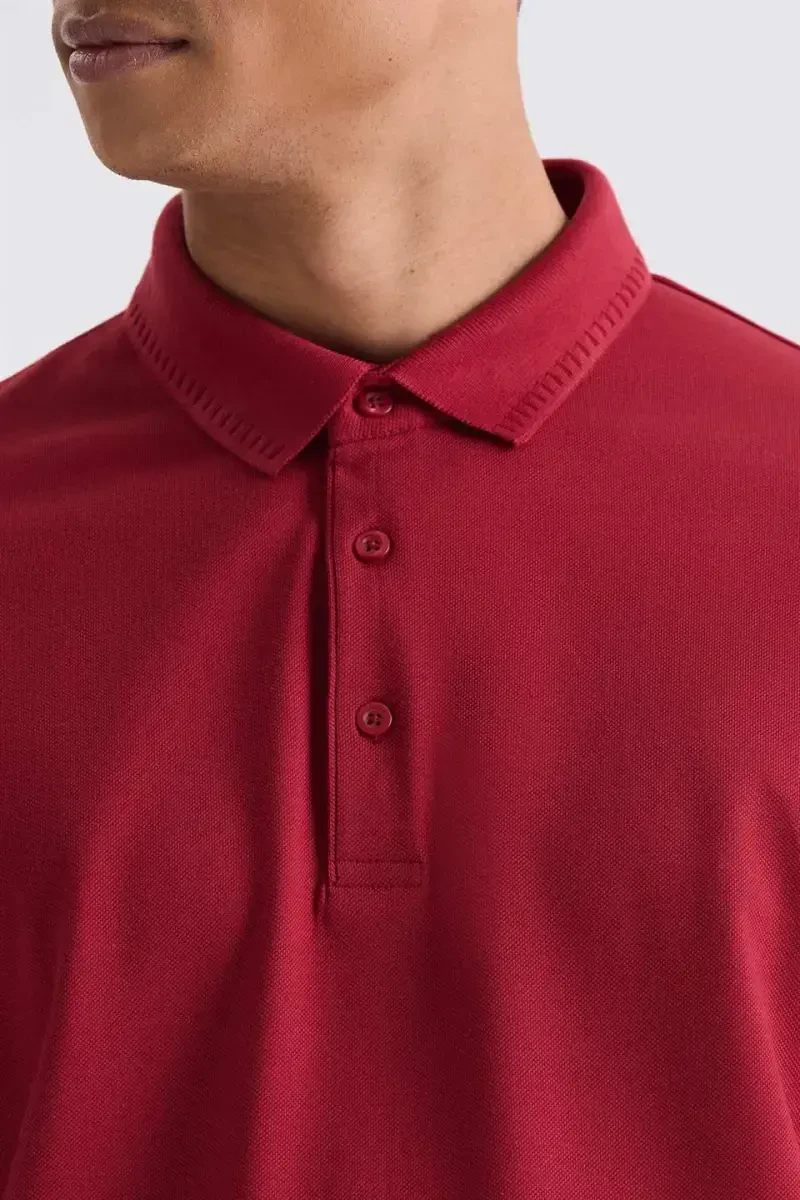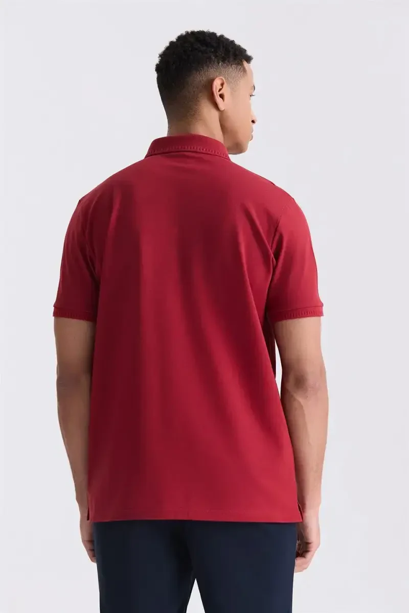 Бордовый Slim Fit 100% Хлопок Мерсеризованный Поло Воротник Футболка